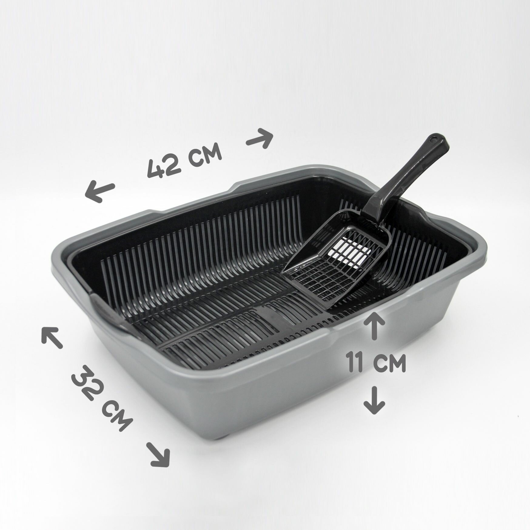 Лоток для кошек с бортиком и совком, с решеткой, черно-серебристый информация: