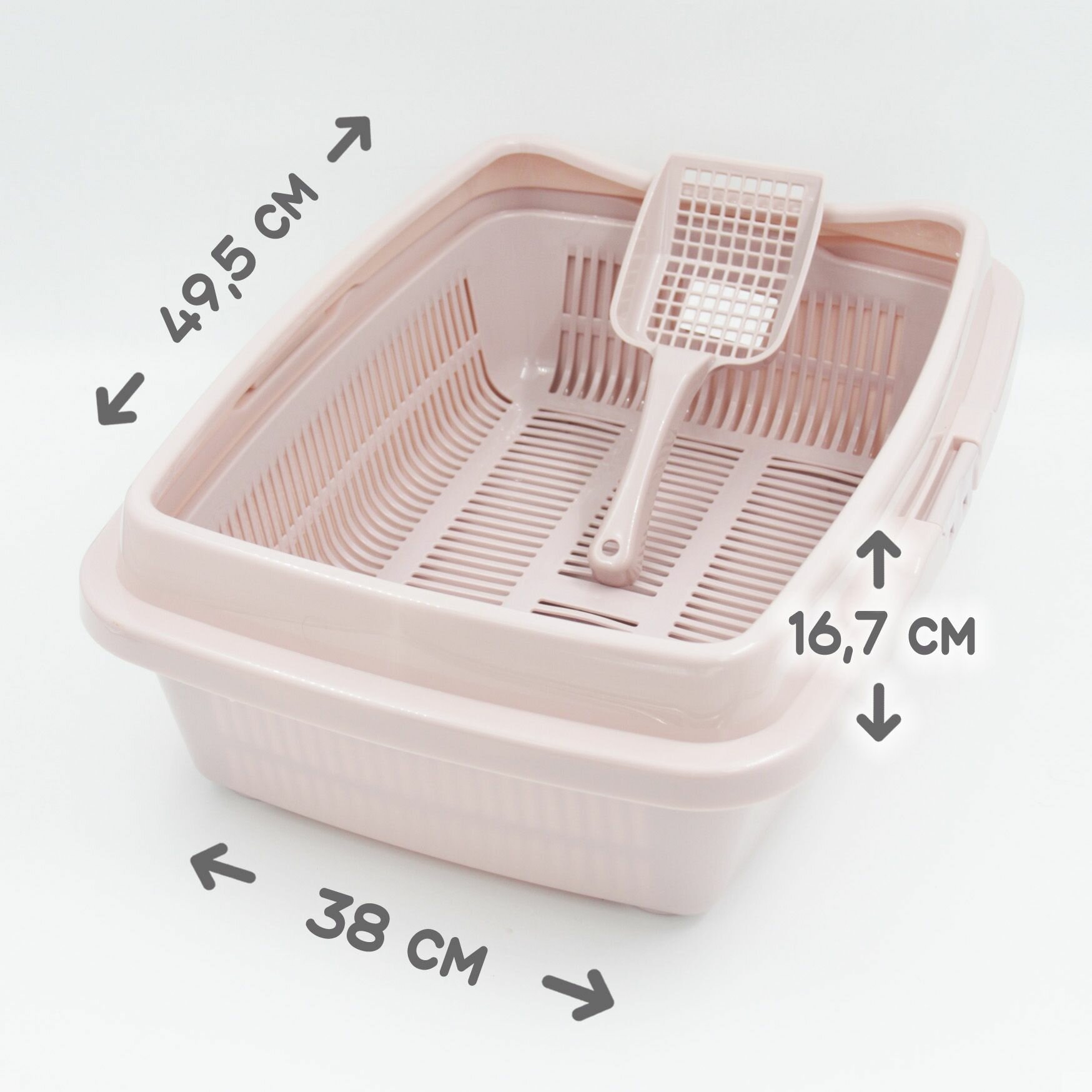 Большой лоток для кошек, собак с высокими бортами и лопаткой 50*37*20 см