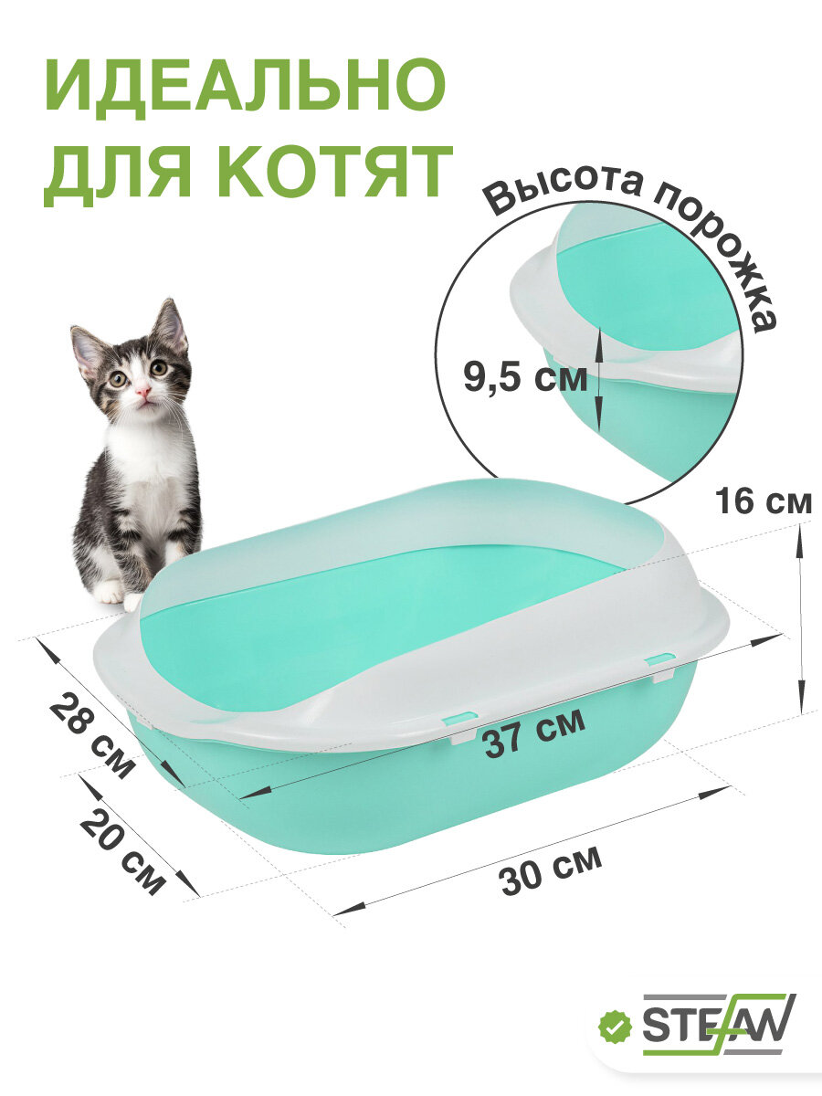 Туалет-лоток для котят и кошек с совком STEFAN, малый (S) 37х28х16, бирюзовый, BP2492 информация: