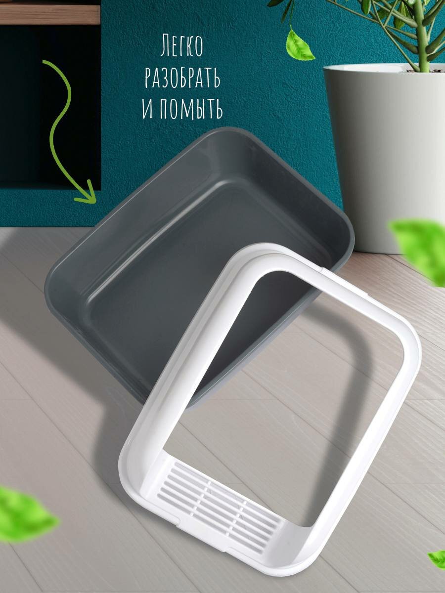 Туалет для кошек с совком, Лоток для животных с совком, серый, 38х29х10,5 см