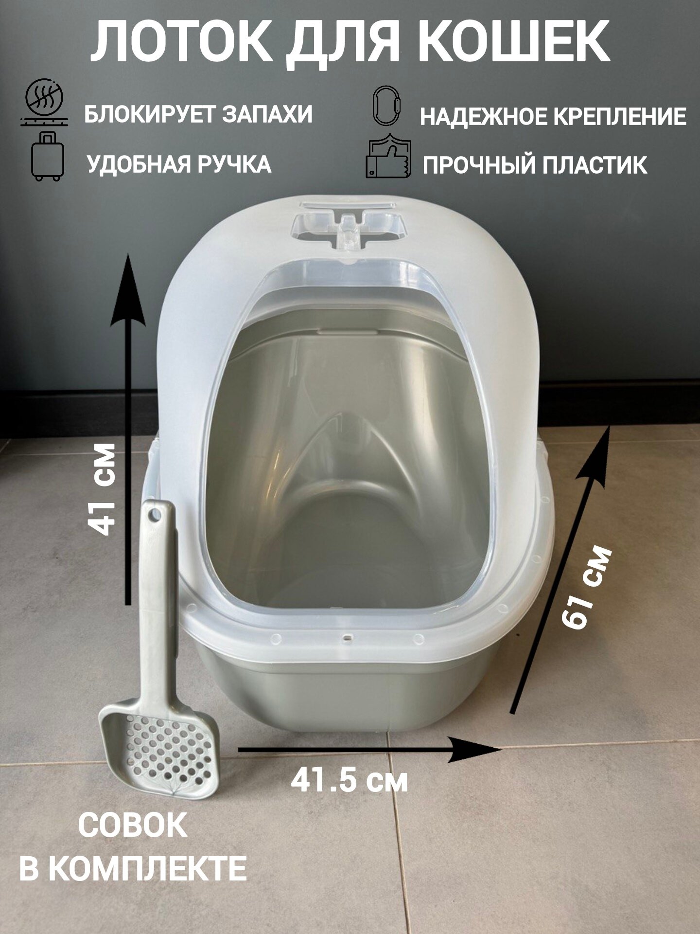 Отзывы на Закрытый лоток (туалет) для кошек "Чистый котик", 61x41.5x41 см, на защелках, совок, ручка, без двери, серый