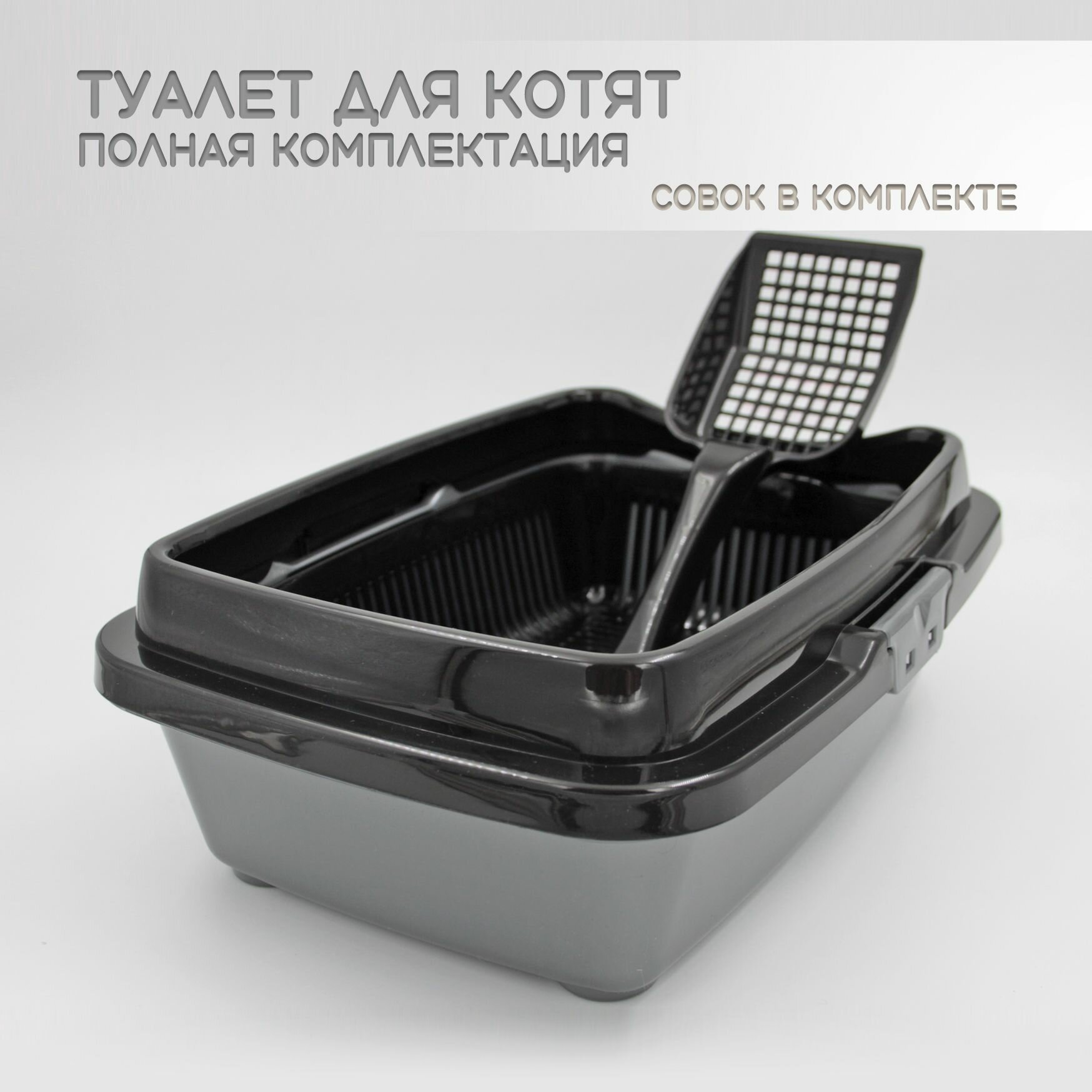 10 цен на Туалет для котят полная комплектация черно-серый + совок в подарок