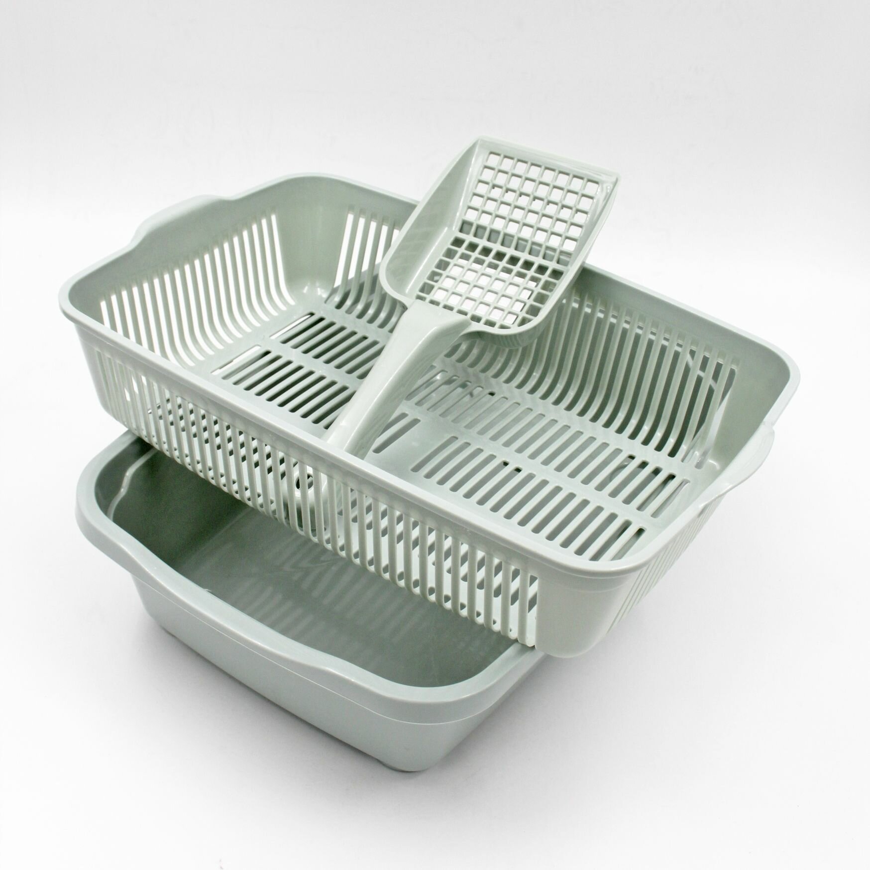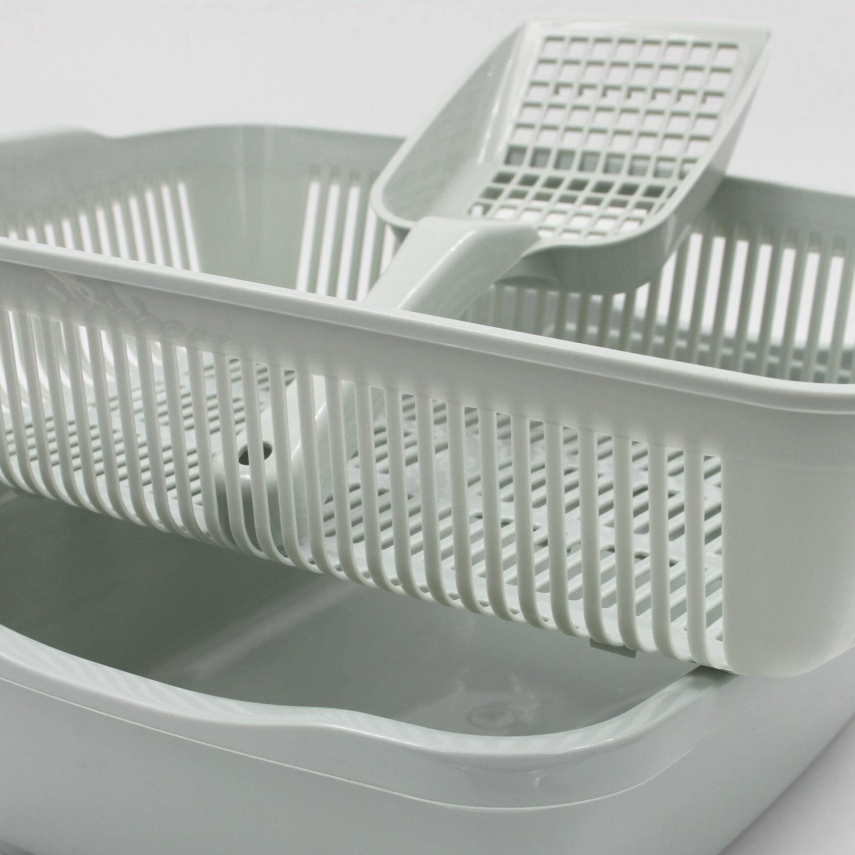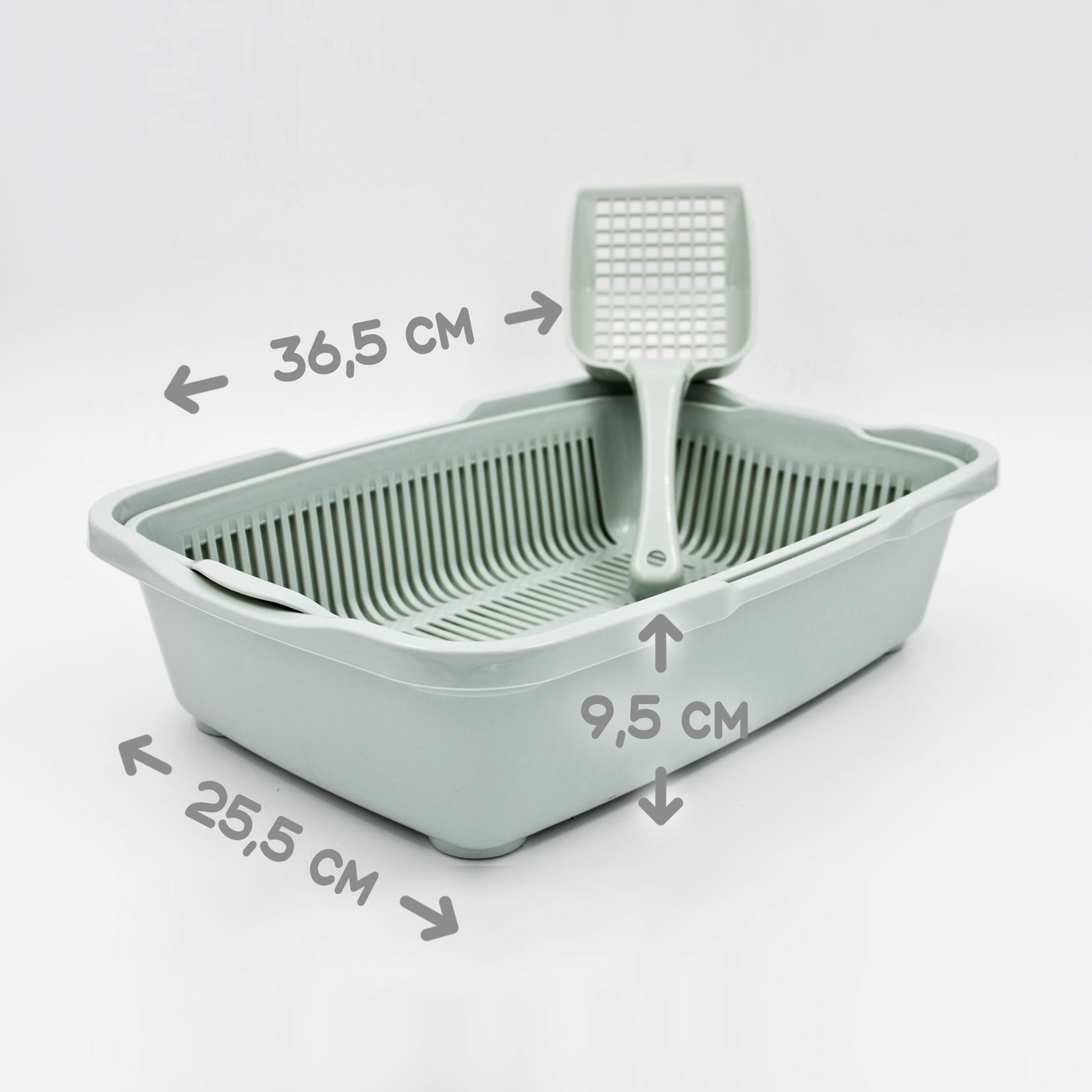 Туалет для кошек с совком, Лоток для животных с совком, серый, 38х29х10,5 см