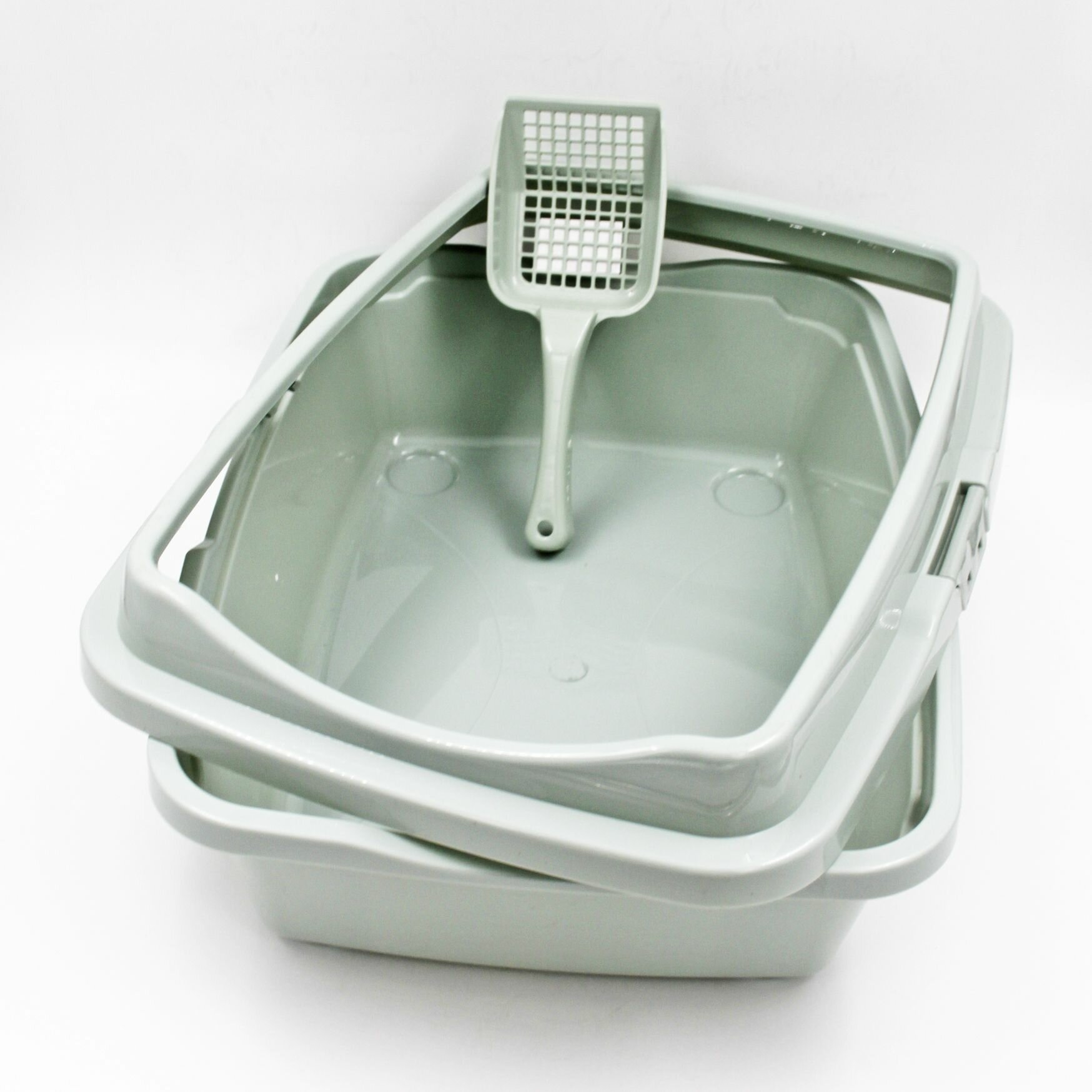Туалет для кошек с совком, Лоток для животных с совком, серый, 38х29х10,5 см