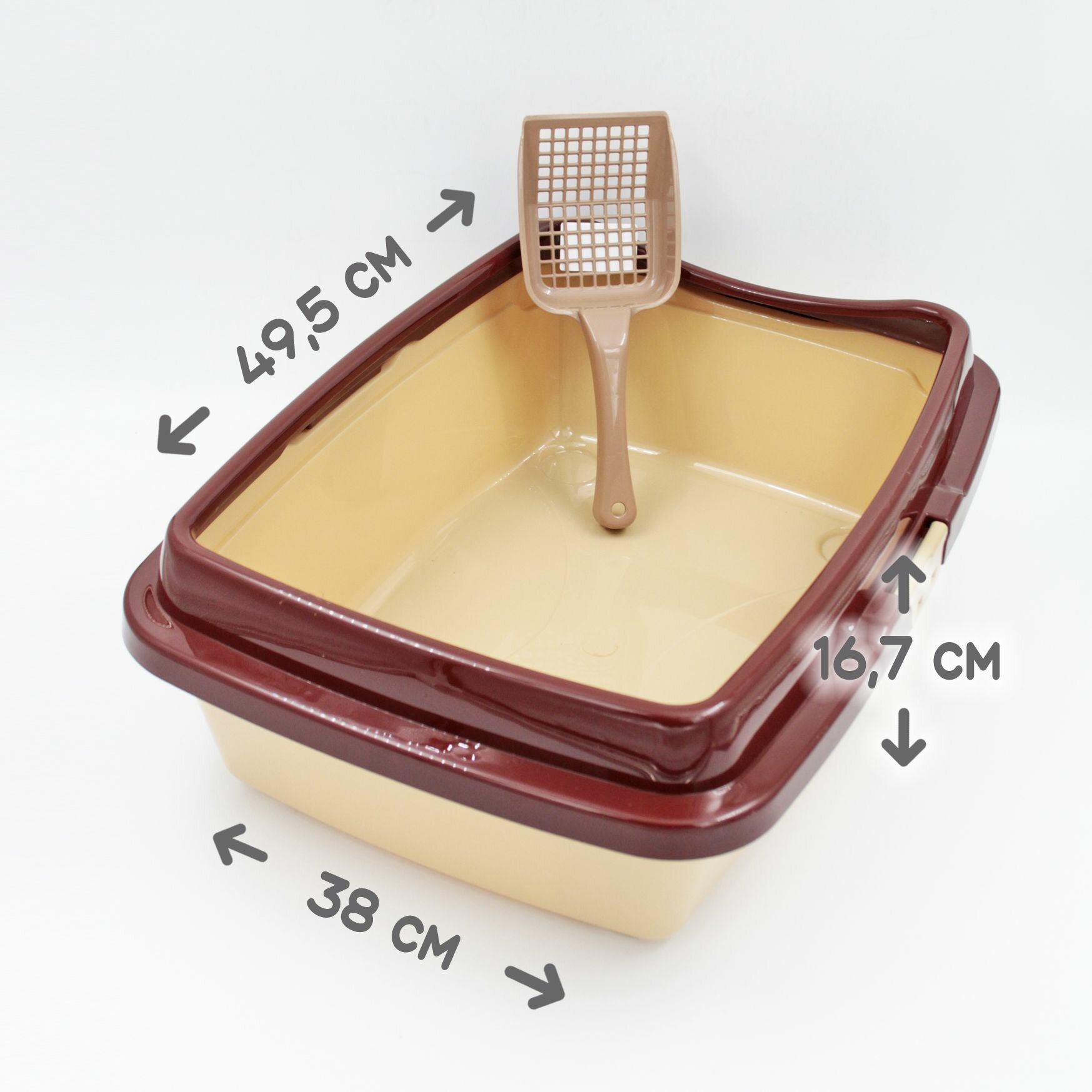 Туалет для кошек большой с бортом коричнево-бежевый + совок в подарок информация: