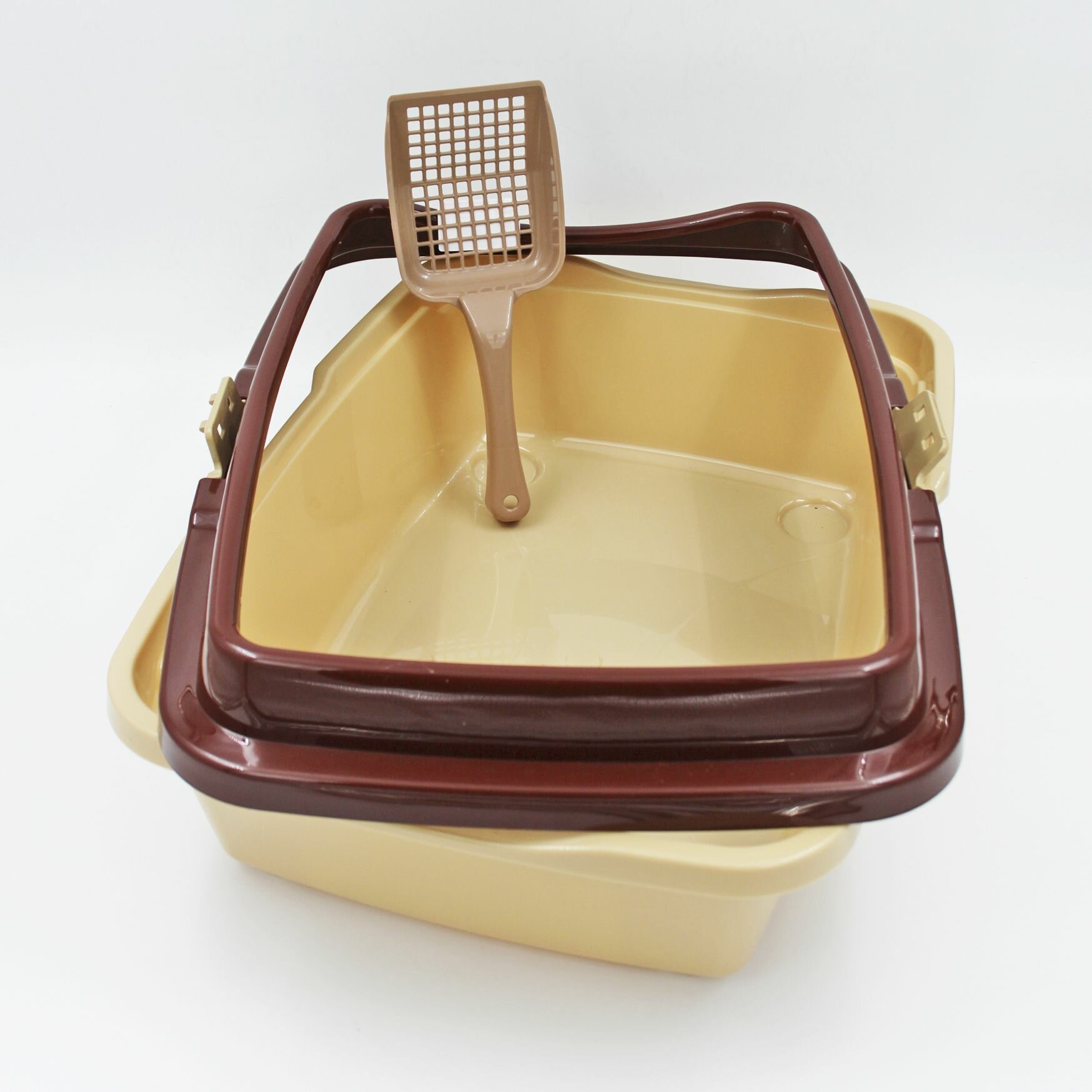 10 цен на Туалет для кошек большой с бортом коричнево-бежевый + совок в подарок