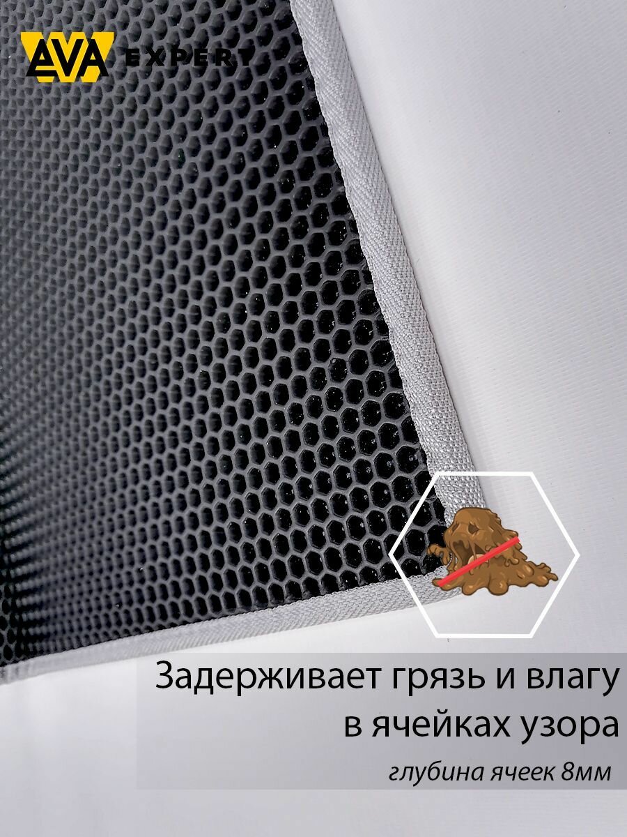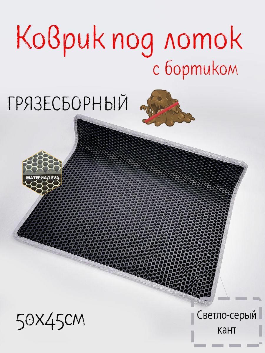 Коврик под лоток с бортиком 50х45, коврик под миску для кошки и собаки (черные соты со светло-серым кантом) информация:
