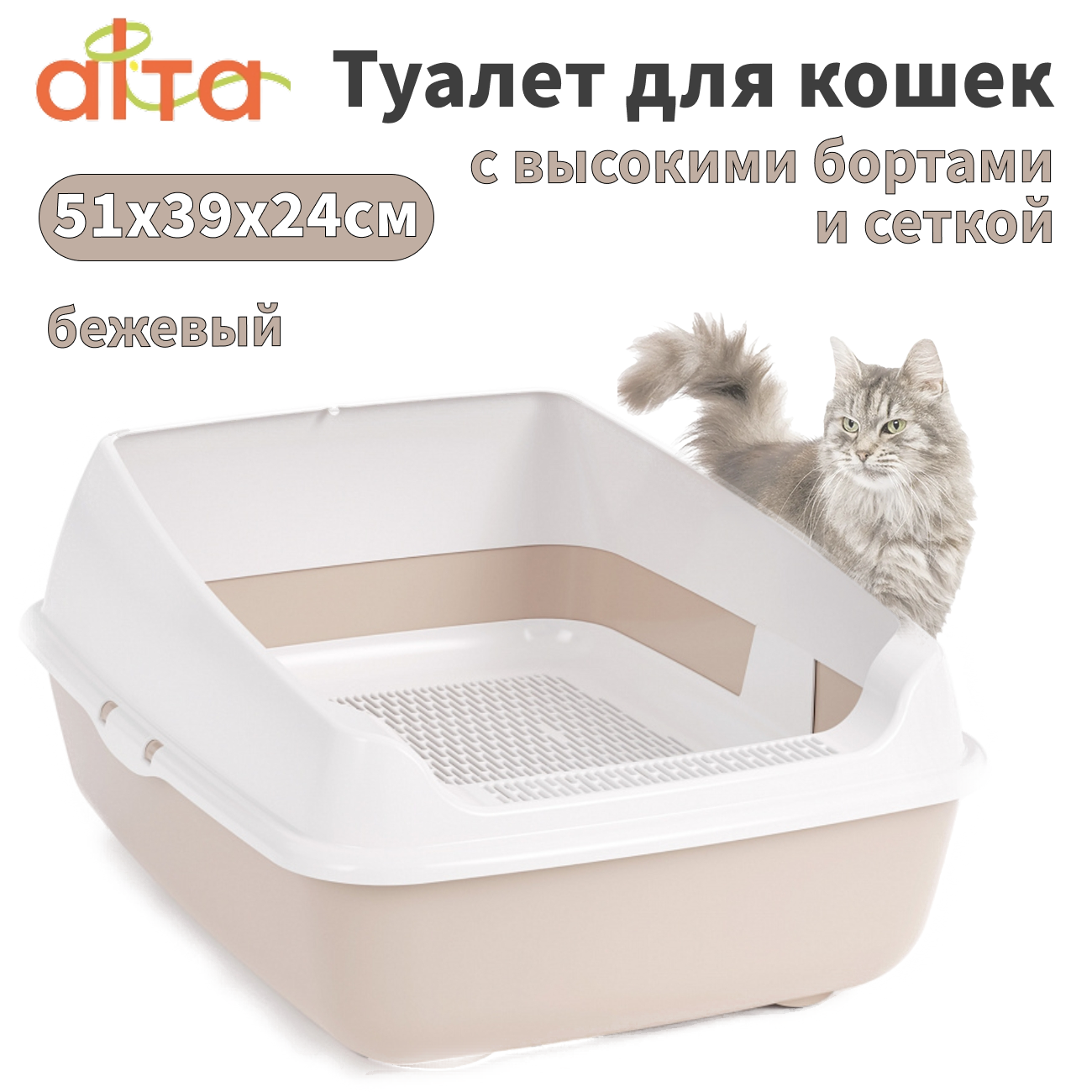 10 цен на Альта М8574 туалет для кошек с высокими бортами и сеткой бежевый 51х39х24см