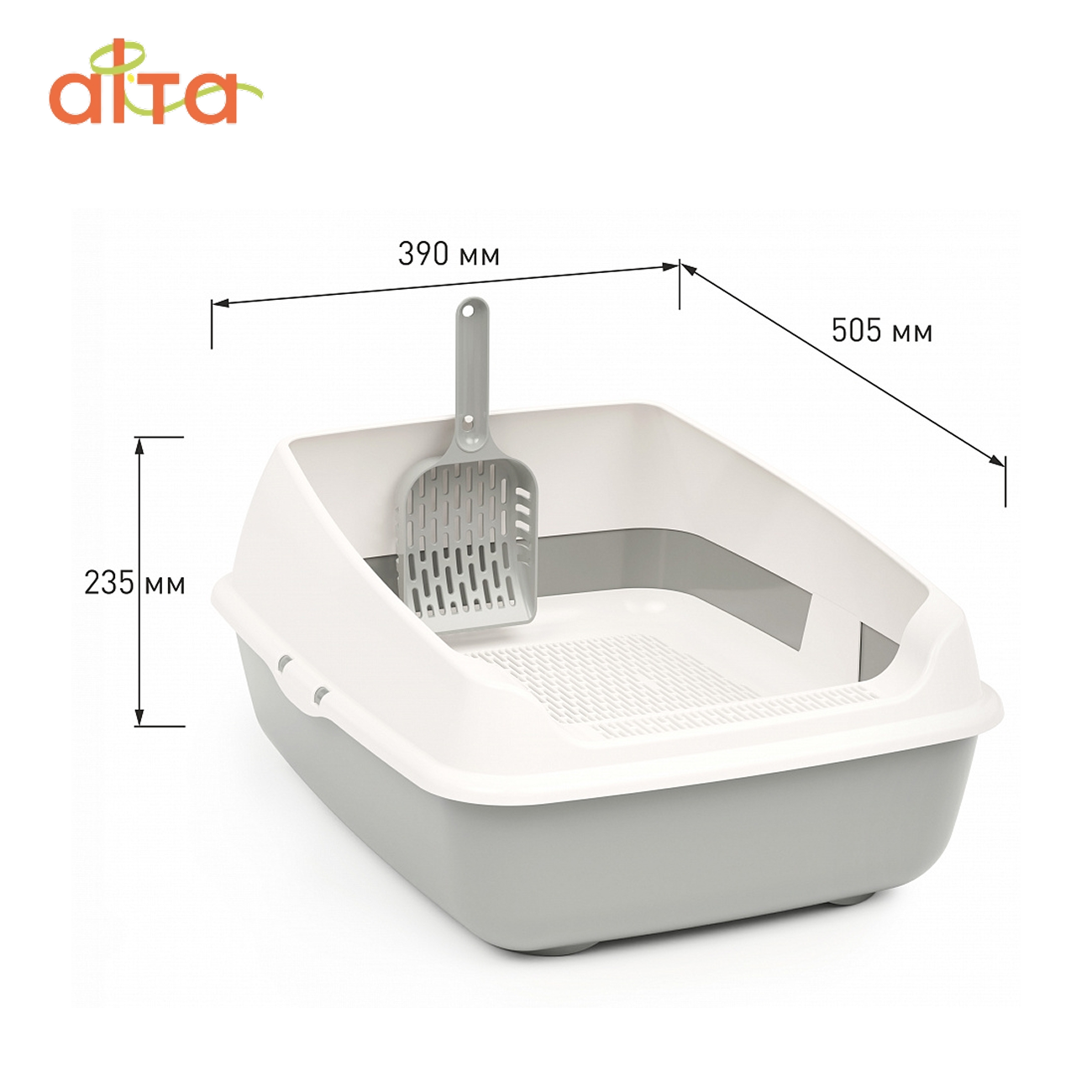 Альта М8576 туалет для кошек с высокими бортами, сеткой и совком серый 51х39х24см информация: