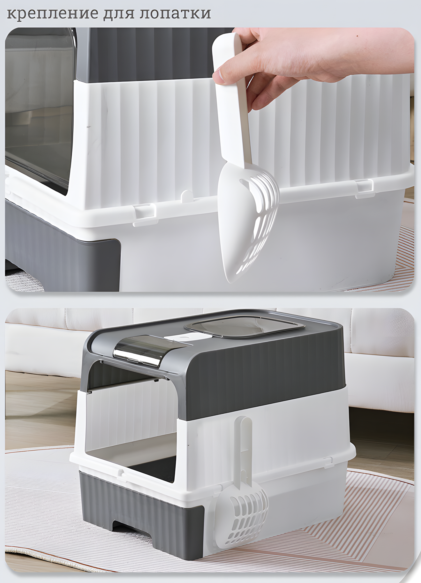Отзывы на Туалет для кошек, закрытый, с лопаткой, угольный фильтр, серый, пластик, 48x36x35 см