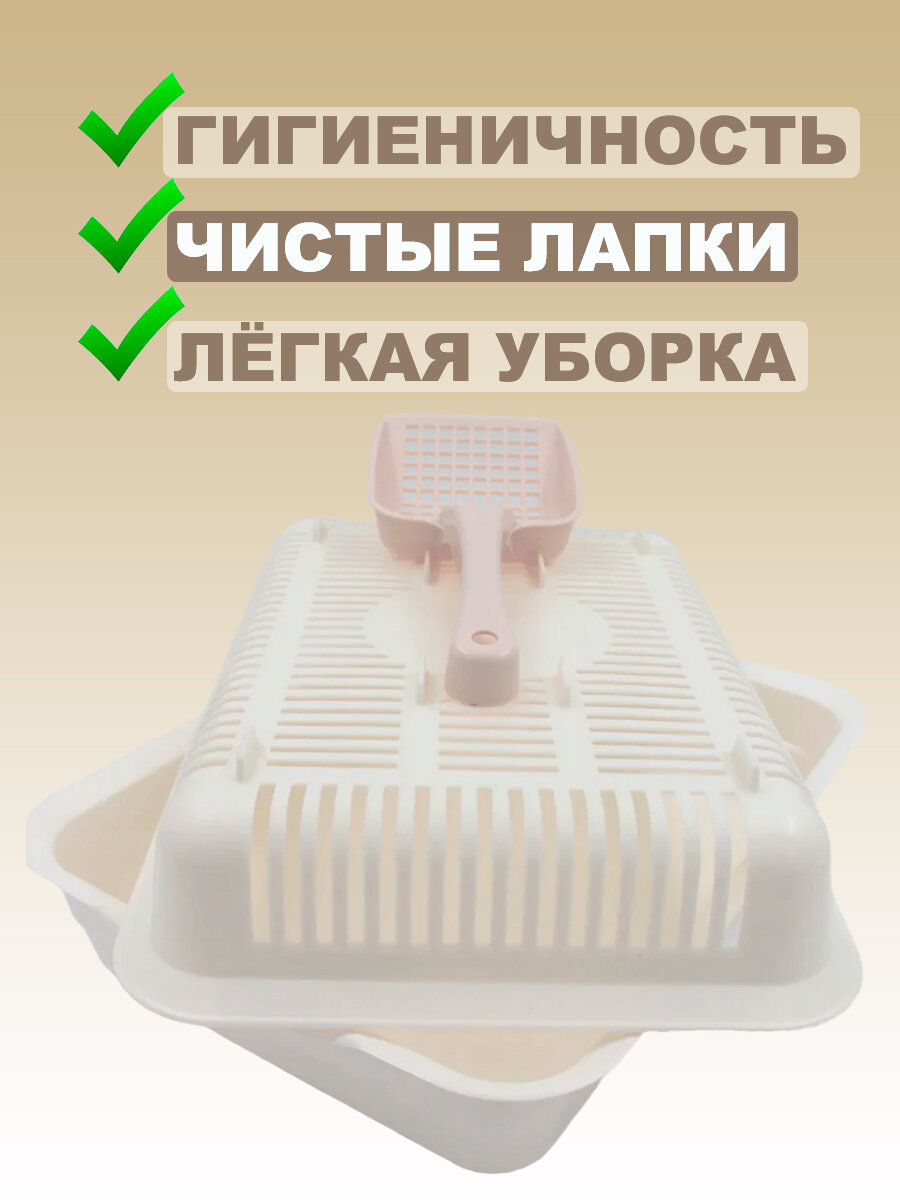 Лоток для кошек с сеткой и лопаткой 34,5х25,5х7,5 см открытый №3, белый информация: