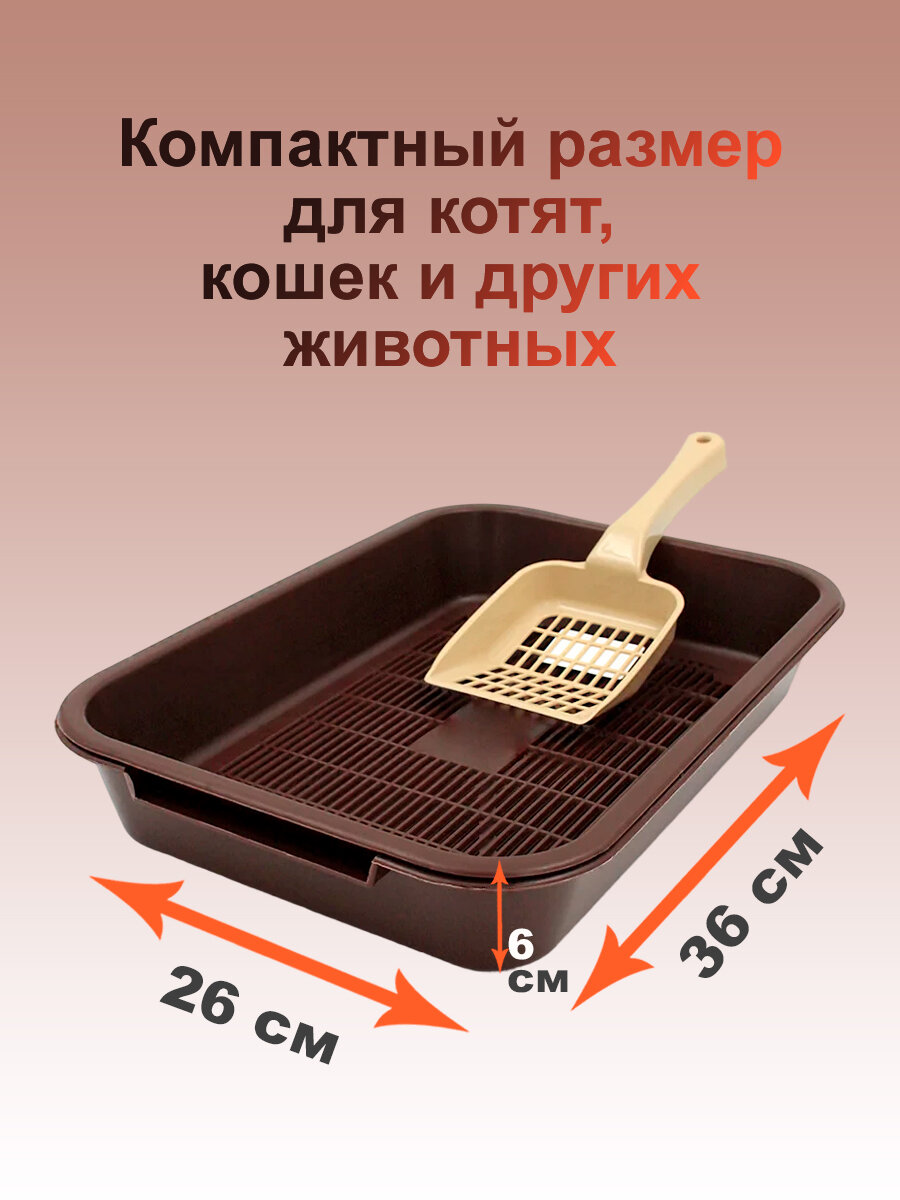 Кошачий лоток с сеткой и совком 36х26х6 см №1 для кошек и котят, цвет шоколад информация:
