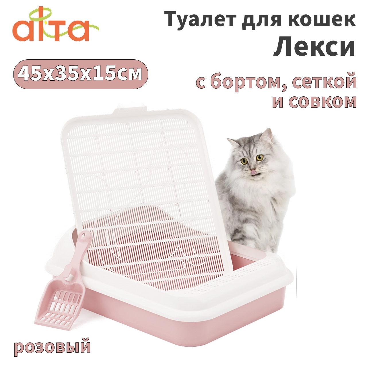 10 цен на Альта М6975 туалет для кошек Лекси с бортом, сеткой и совком розовый 45х35х15см