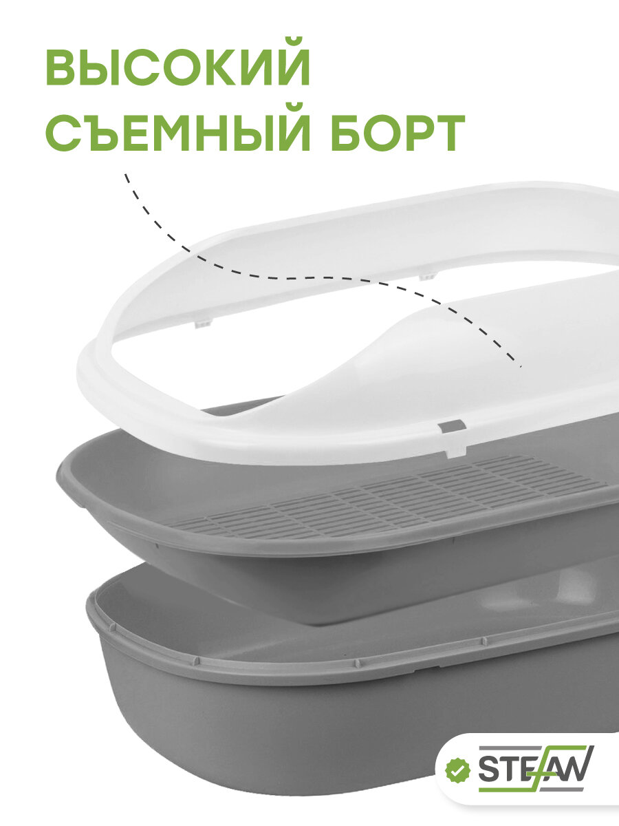 Туалет-лоток для кошек с сеткой и совком ХL, 63х44х24 STEFAN, большой, серый, BP2901G информация:
