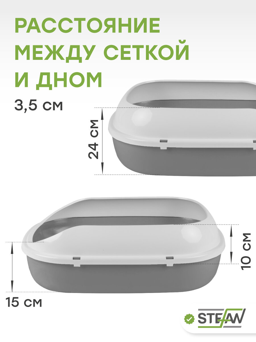 10 цен на Туалет-лоток для кошек с сеткой и совком ХL, 63х44х24 STEFAN, большой, серый, BP2901G