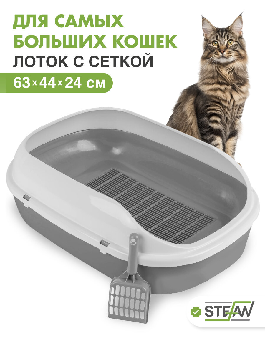 Отзывы на Туалет-лоток для кошек с сеткой и совком ХL, 63х44х24 STEFAN, большой, серый, BP2901G