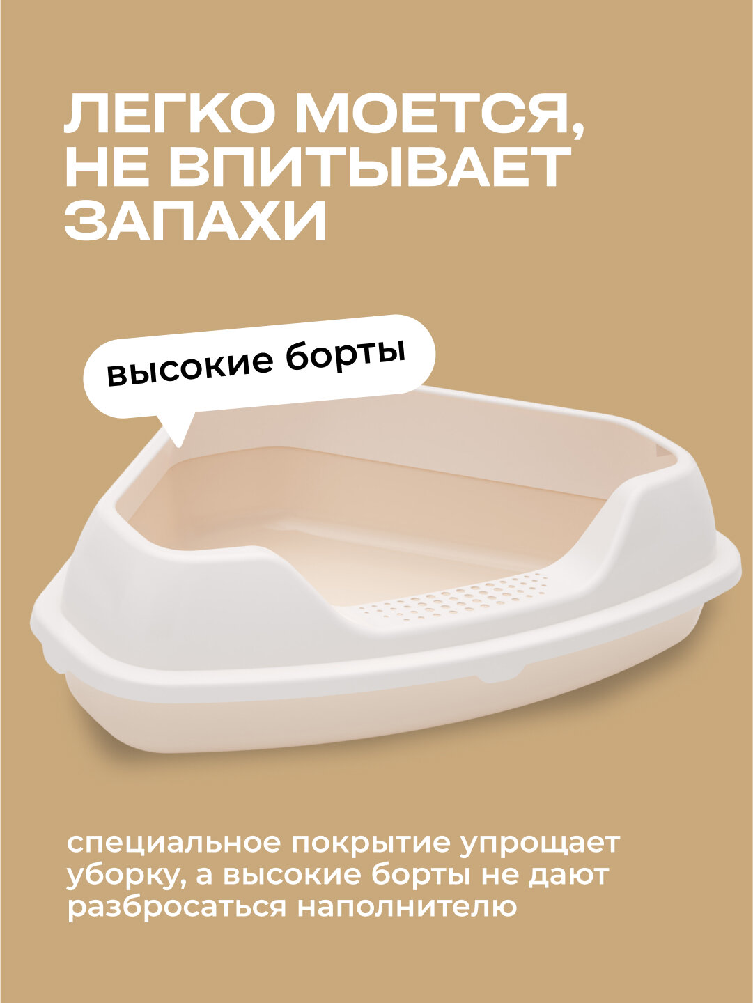 Отзывы на Лоток для кошек и котов угловой (с бортом) бежево-белый, большой