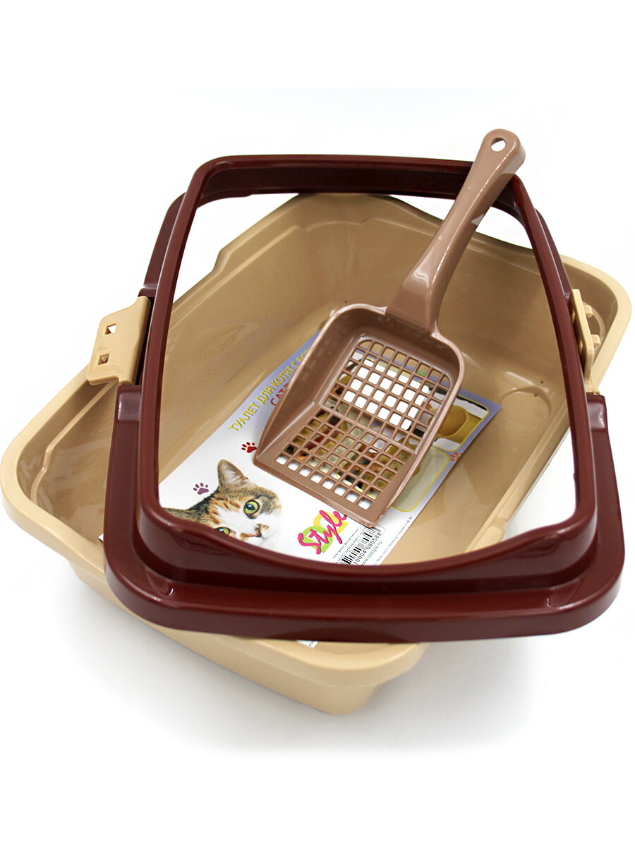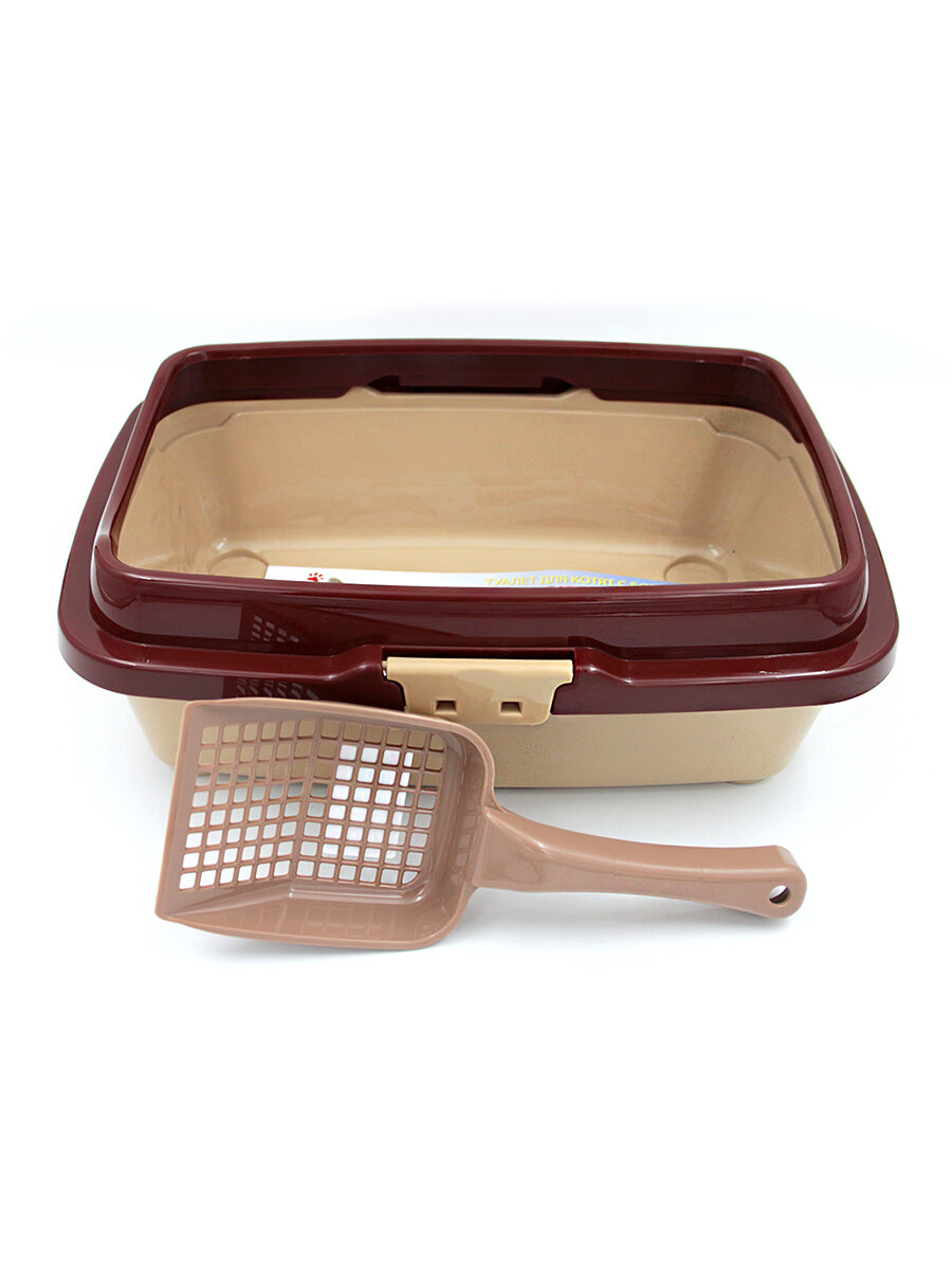 Отзывы на Лоток для котят DD Style, коричневый-бежевый, с бортиком и лопаткой, полипропилен