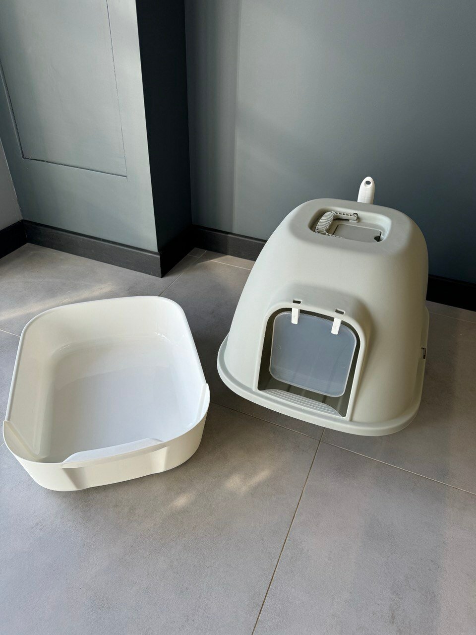 Лоток для кошачьего туалета, закрытый, с лопаткой, арома-мешочком и брызгозащитой, полипропилен