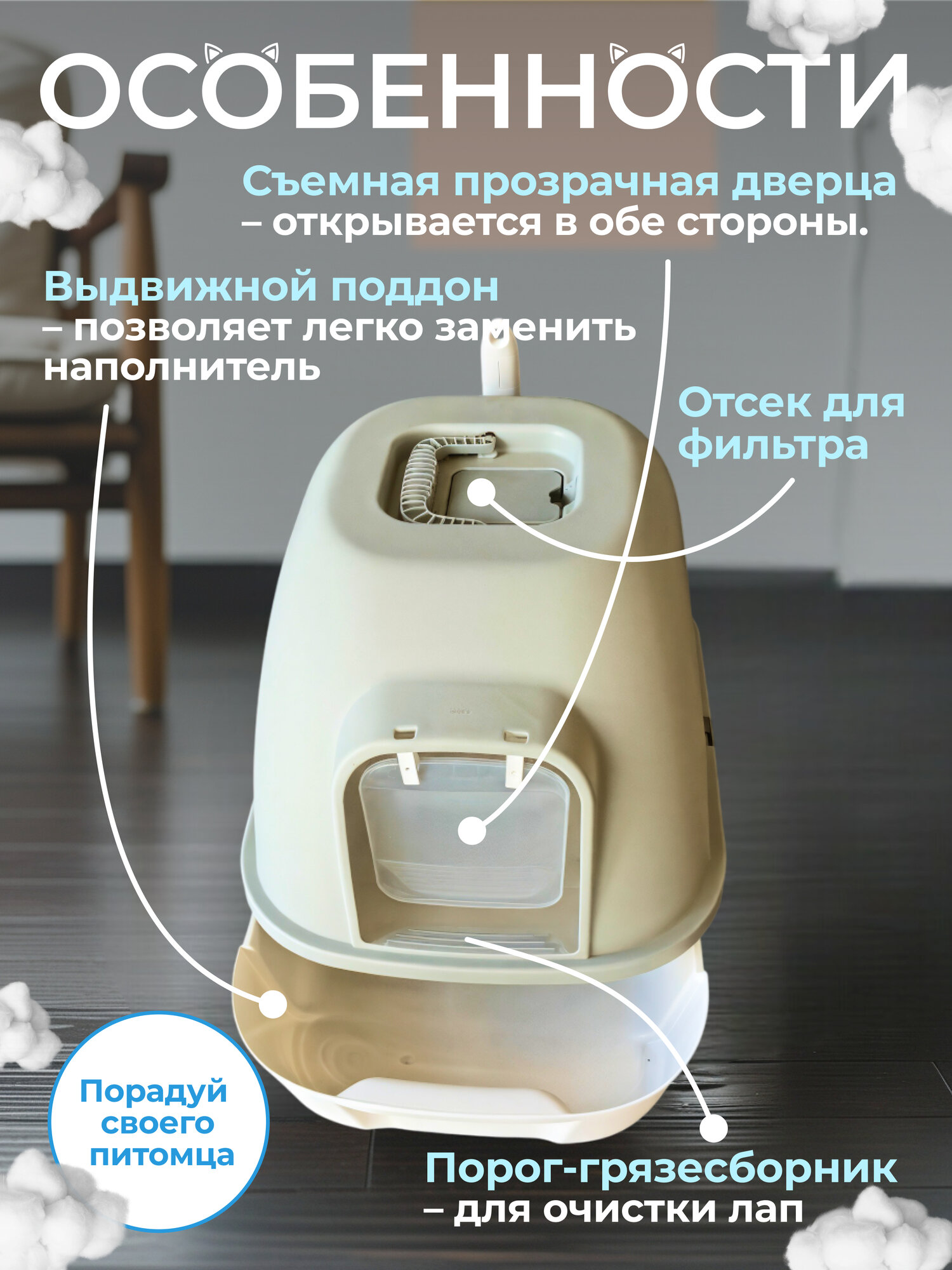 Отзывы на Закрытый лоток (туалет) для кошек, 53.2x41x40.6 см, выдвижной поддон, грязесборник, совок, отсек для фильтра, серый