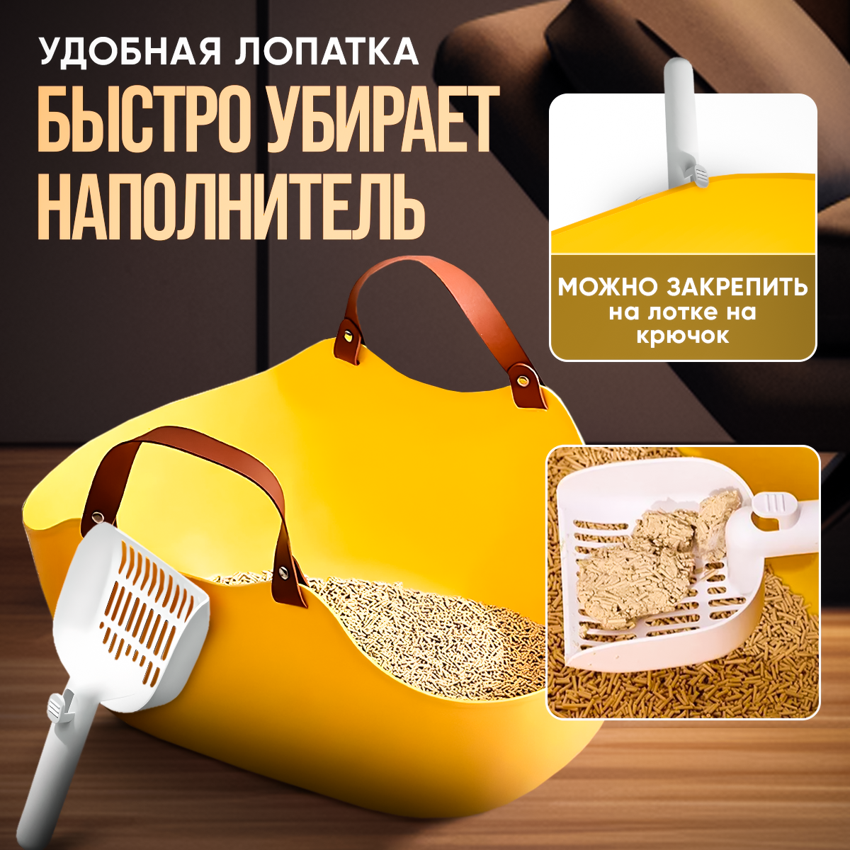 Комплект Лоток для кошек с высоким бортом + коврик "Чистый дом" + лопатка для уборки. Лоток туалет для животных дизайнерский жёлтый с высоким бортом + Коврик + лопатка для уборки 3 290 ₽
