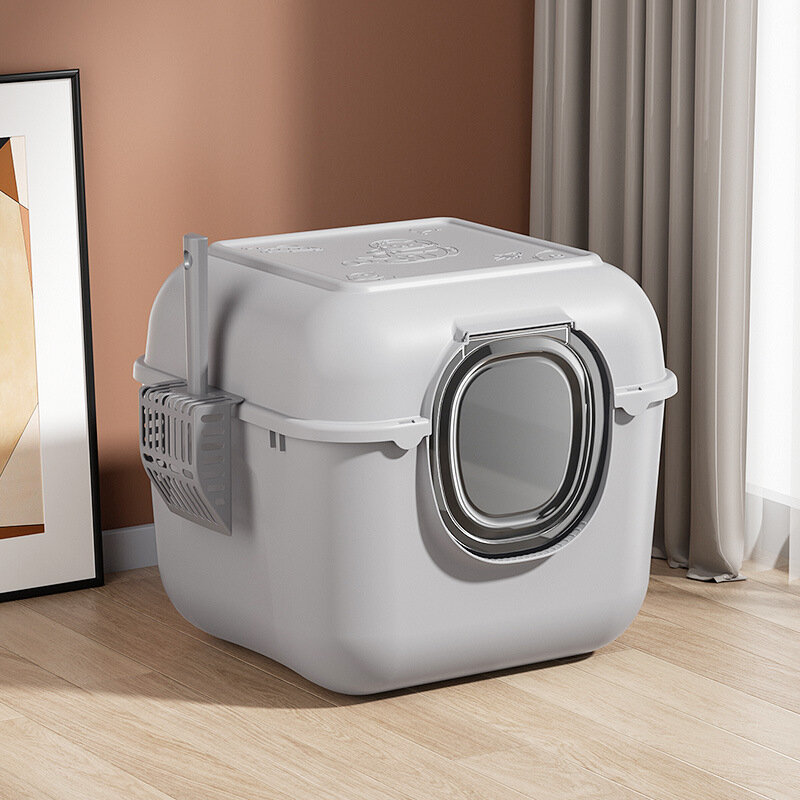 10 цен на Лоток для кошек, закрытый, с лопатой, герметичный, серый, 42x40x38 см
