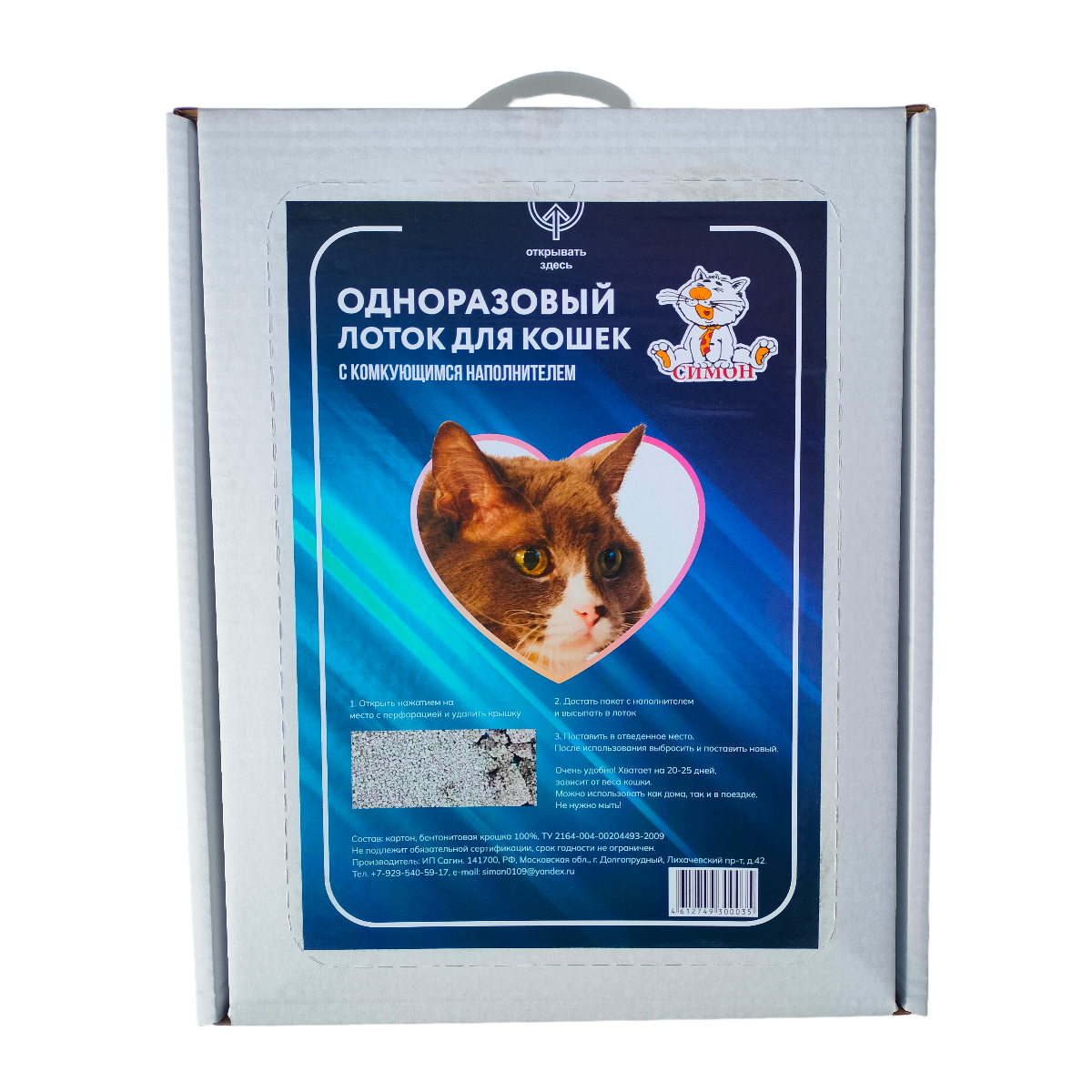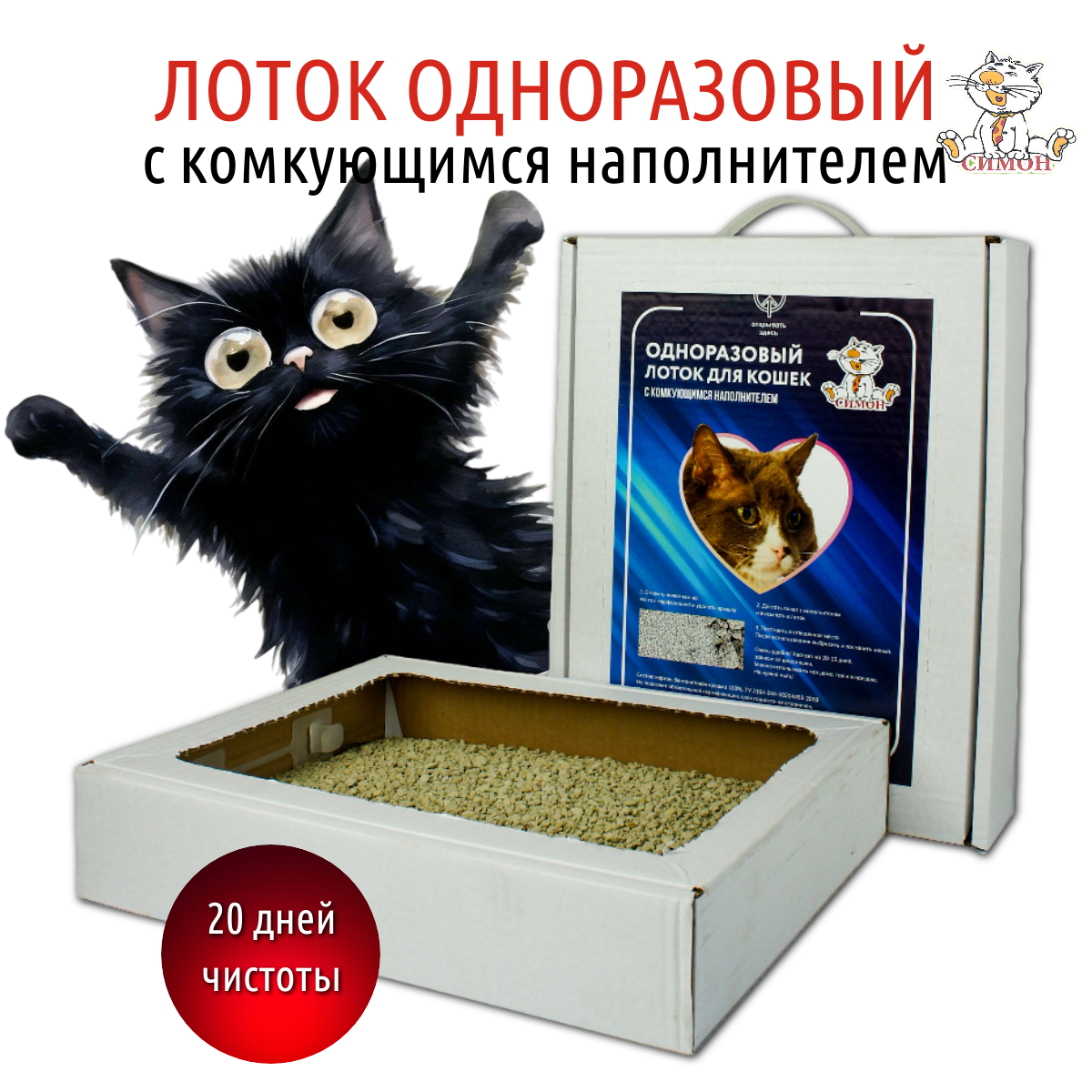 Одноразовый лоток симон с комкующимся наполнителем для кошек (37х30х7см) информация: