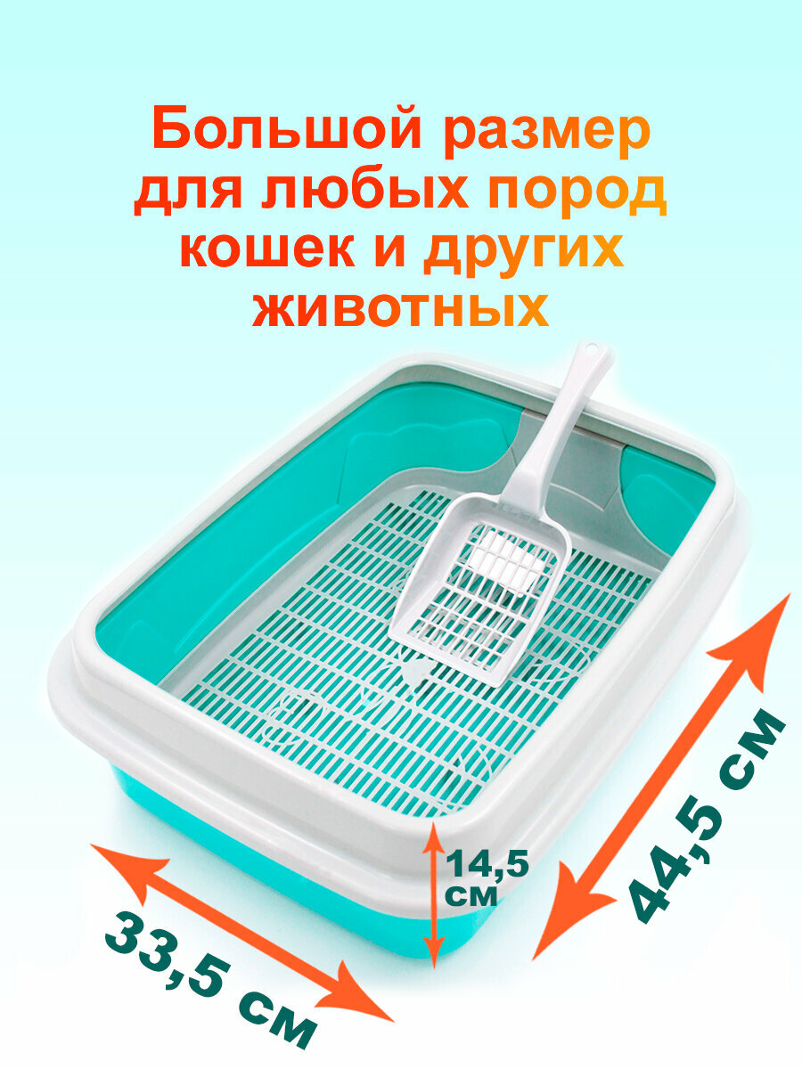 Кошачий туалет большой с сеткой, съемным бортиком и совком, бирюзовый информация: