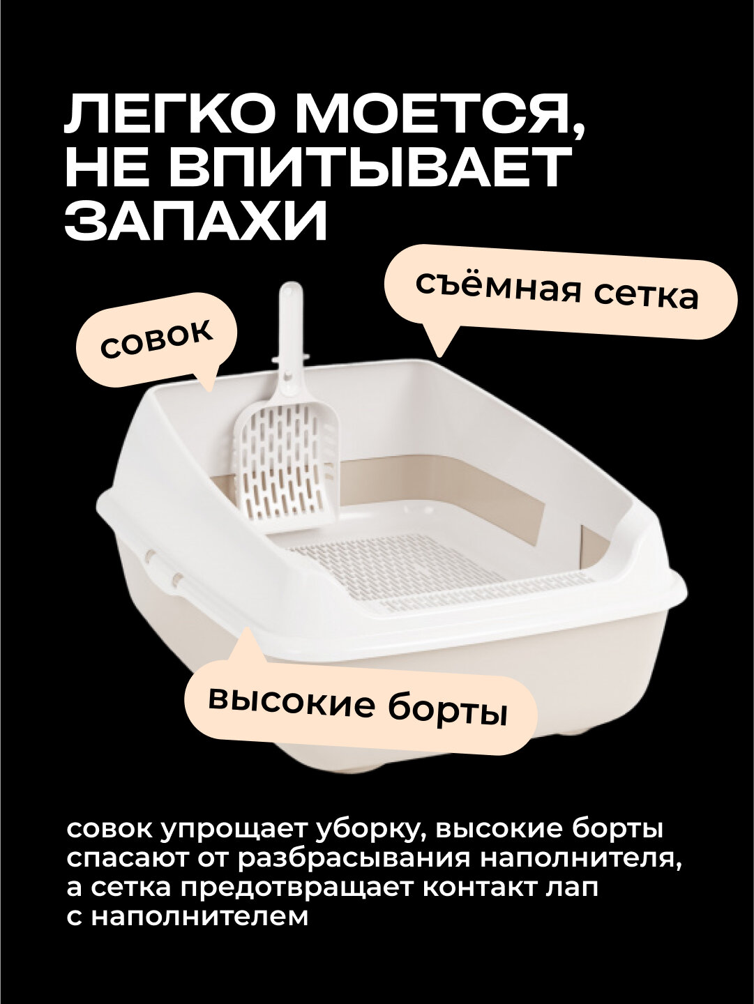 Набор для кошек (лоток с высокими бортами 50,5*39*23 см, сеткой и совком) бежевый информация:
