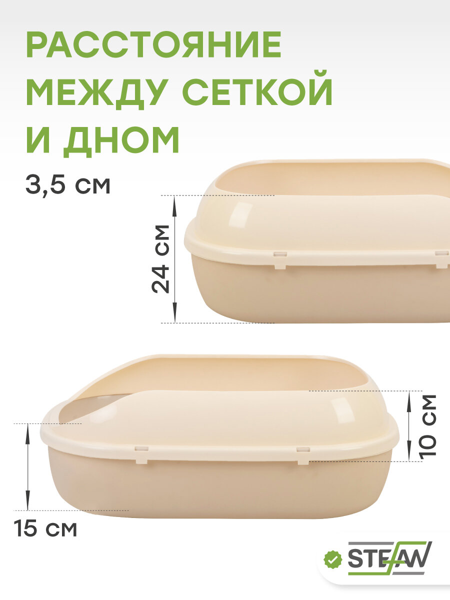 Отзывы на Туалет-лоток для кошек с сеткой и совком ХL, 63х44х24 STEFAN, большой, светло-коричневый, BP2903G