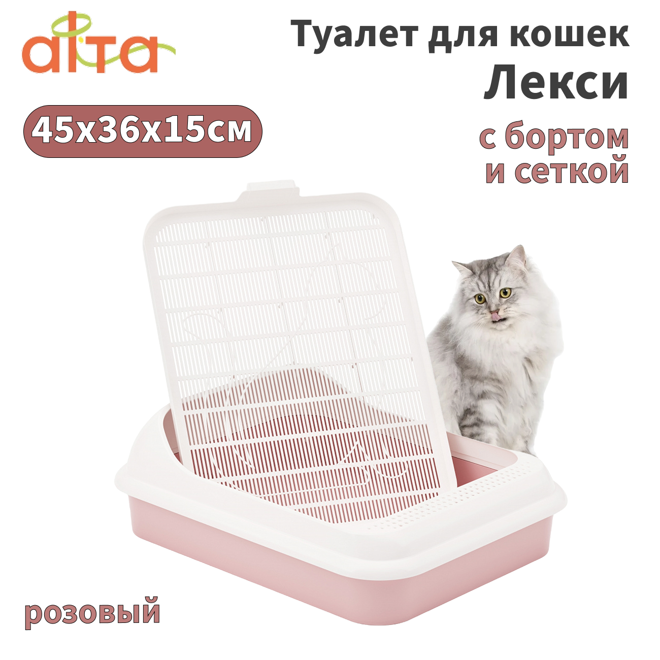 Альта М6933 туалет для кошек Лекси с бортом и сеткой розовый 45х36х15см информация: