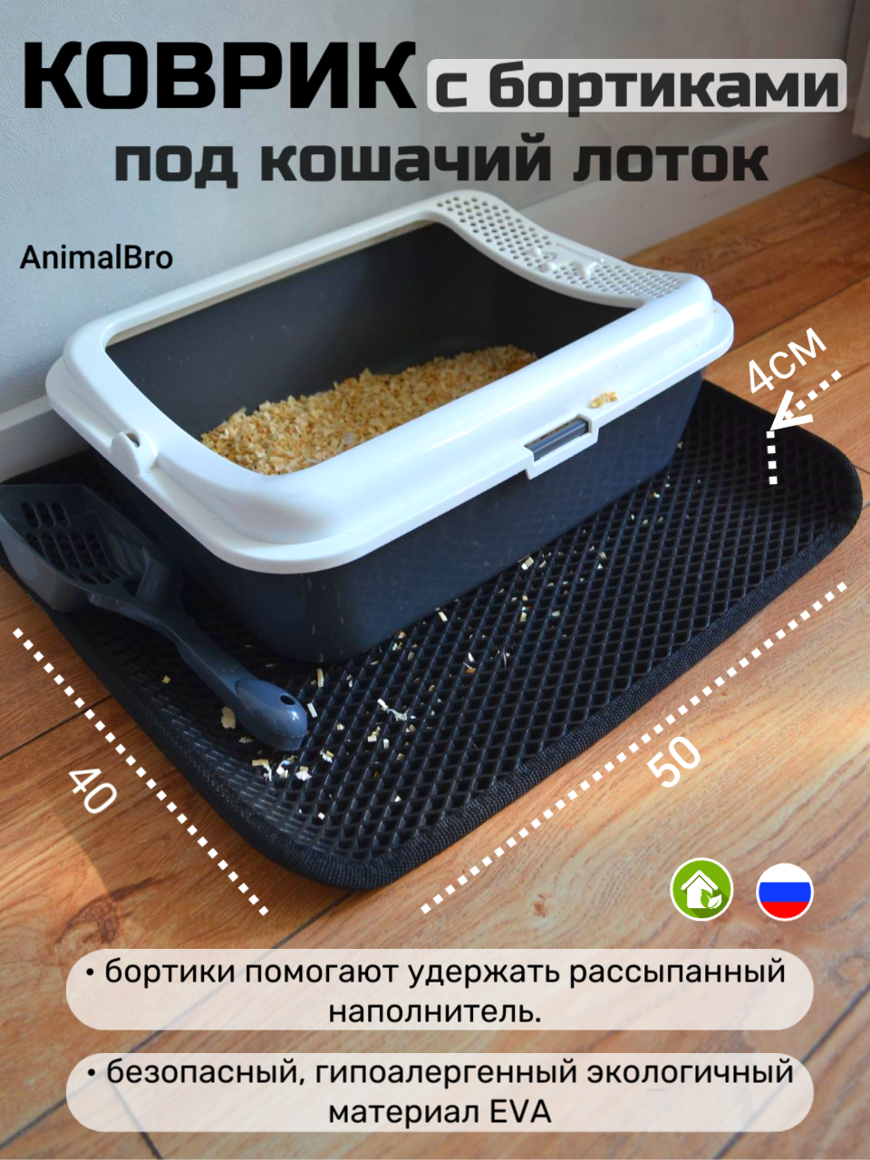 Коврик под лоток для кошек и собак с бортиками, 40х50 информация: