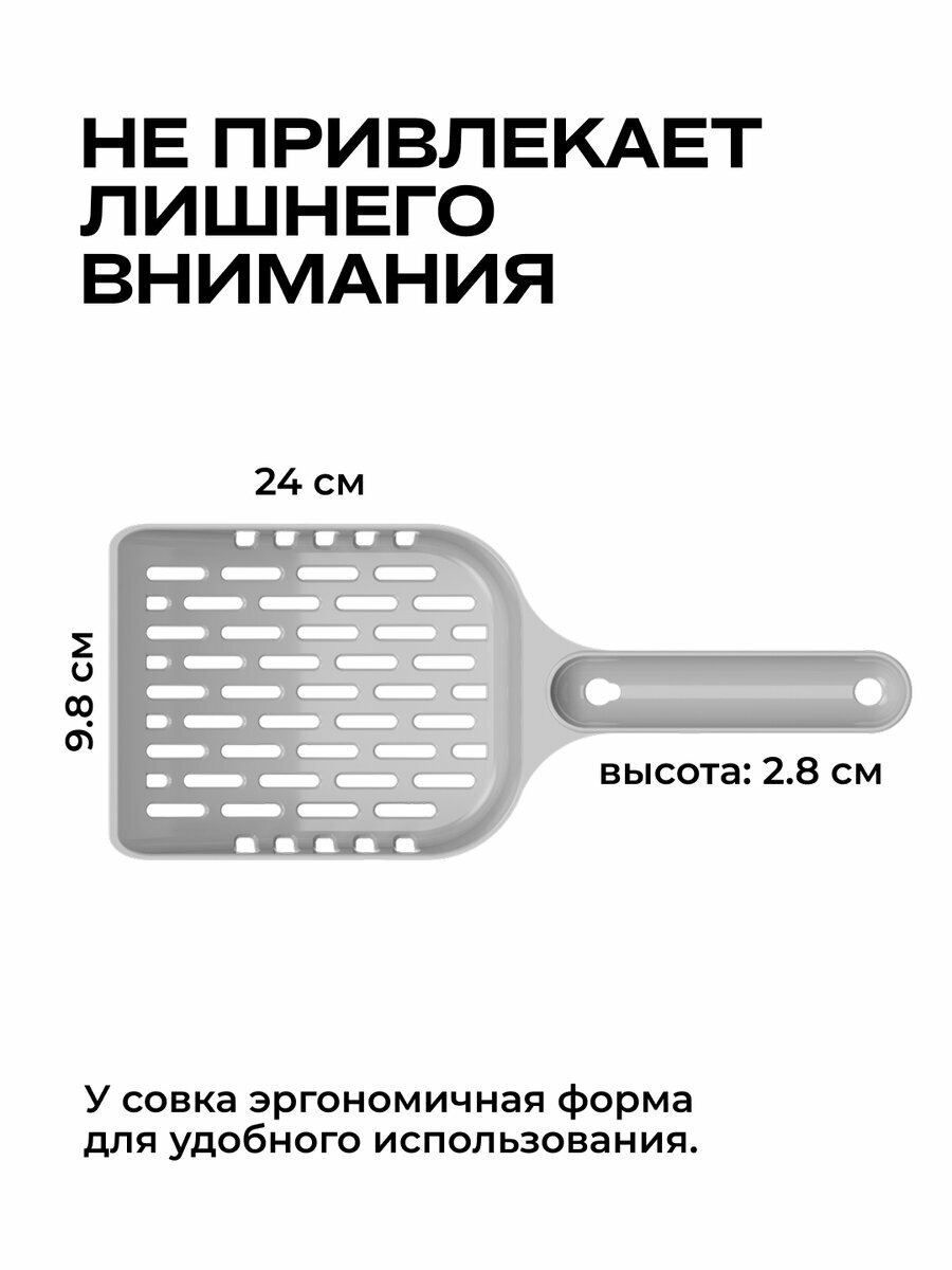 Совок серый для уборки кошачьего лотка, пластиковый с сеткой информация: