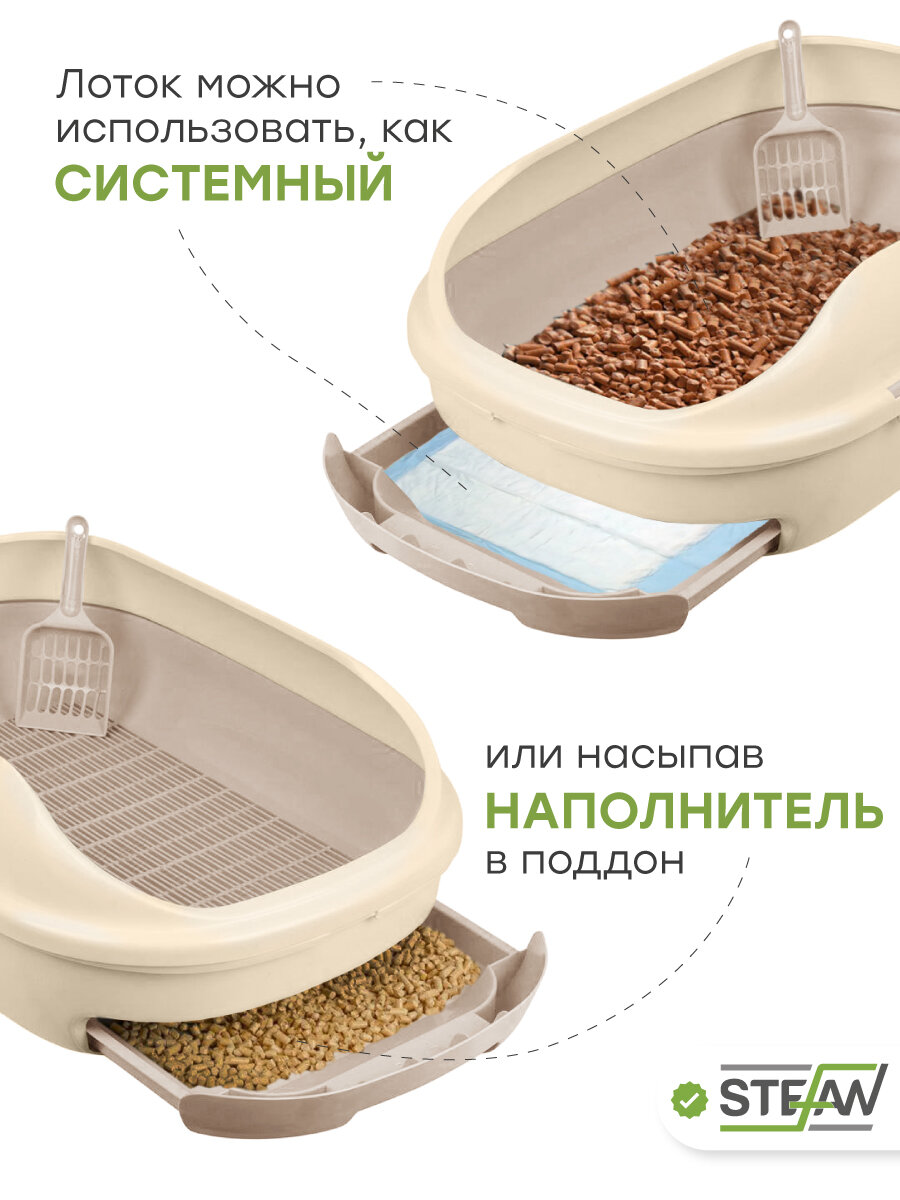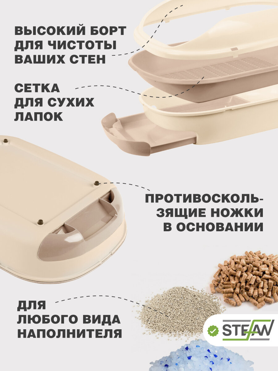 10 цен на Большой системный для кошек с высокими бортами, сеткой и поддоном STEFAN (Штефан)(ХL) 63х45х21, бежевый, BP2903