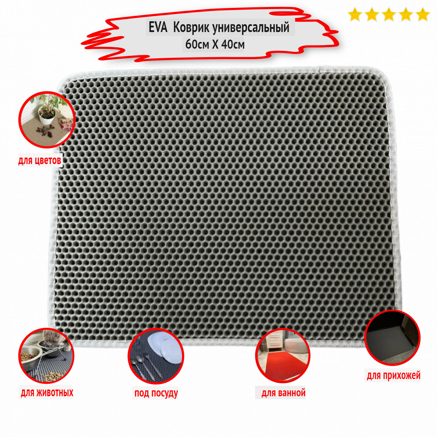 Отзывы на Коврик/подстилка Autozoom для животных 60х40 под лоток/миску. Материал серый EVA/ЭВА/ЕВА, кант серый.