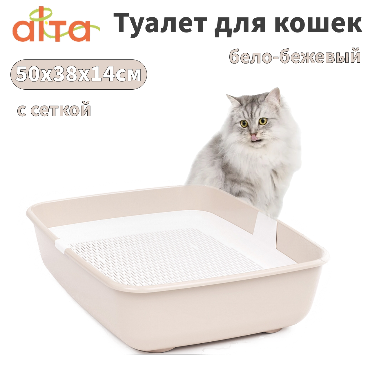 Альта М8581 туалет для кошек с сеткой бело-бежевый 50х38х14см информация:
