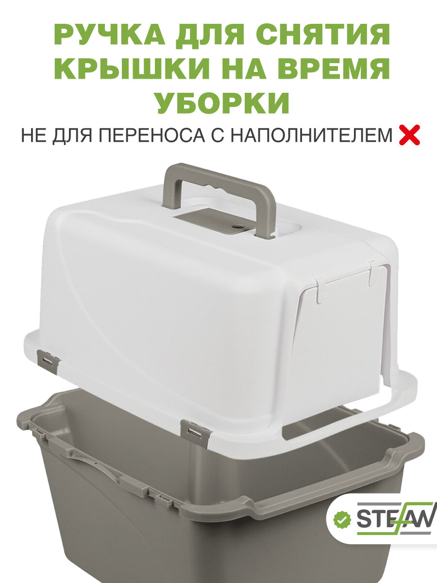 Лоток закрытый, туалет домик для кошек STEFAN, с высокими бортами, средний (M), 49х40х42, серый, BP1911 информация: