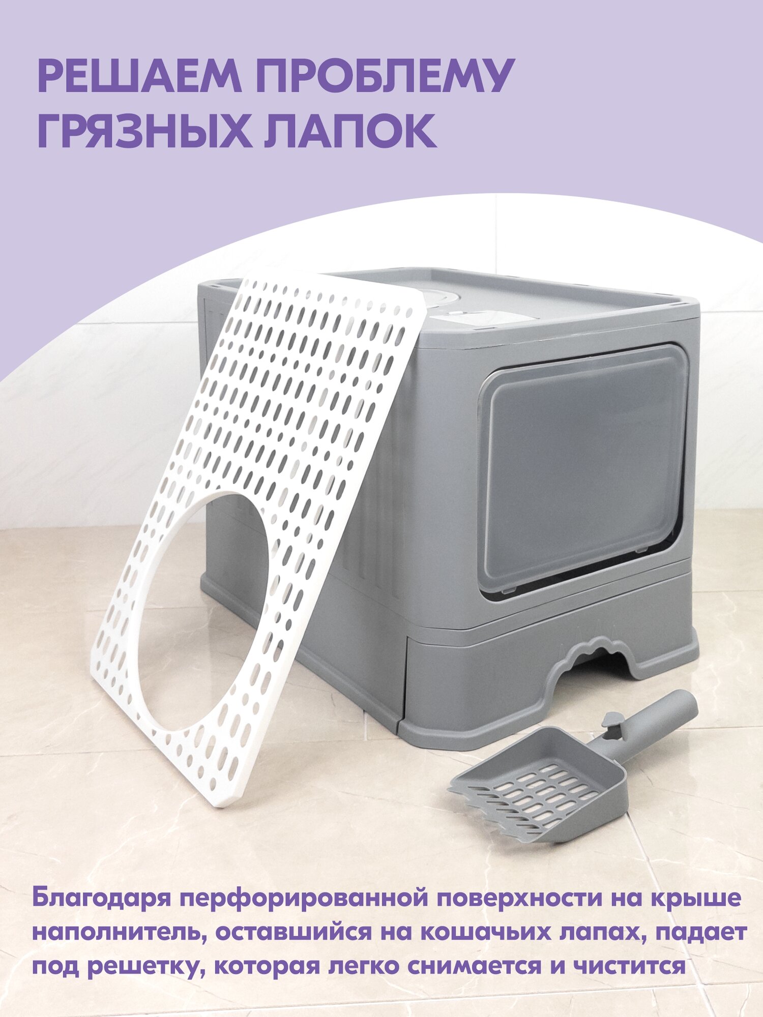 Туалет для кошек с совком, Лоток для животных с совком, серый, 38х29х10,5 см