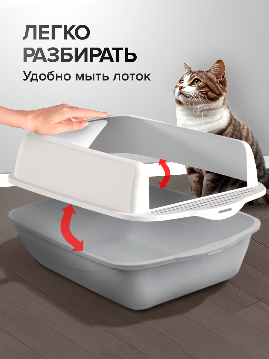 10 цен на Большой лоток для кошек, собак с высокими бортами и лопаткой 50*37*20 см