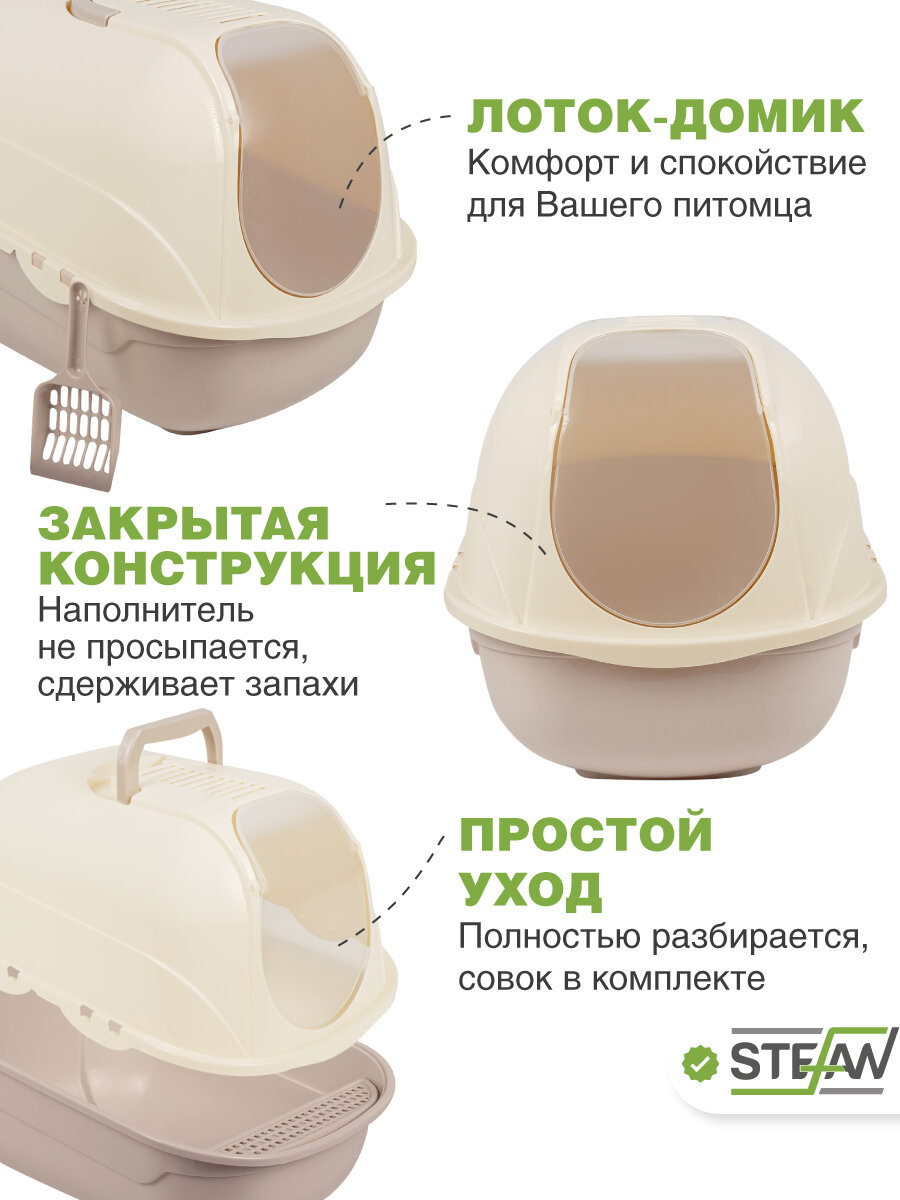 Отзывы на Лоток для кошек закрытый STEFAN (Штефан) большой туалет домик, под наполнитель, средний (M) 53х41х42, бежевый, BP2533