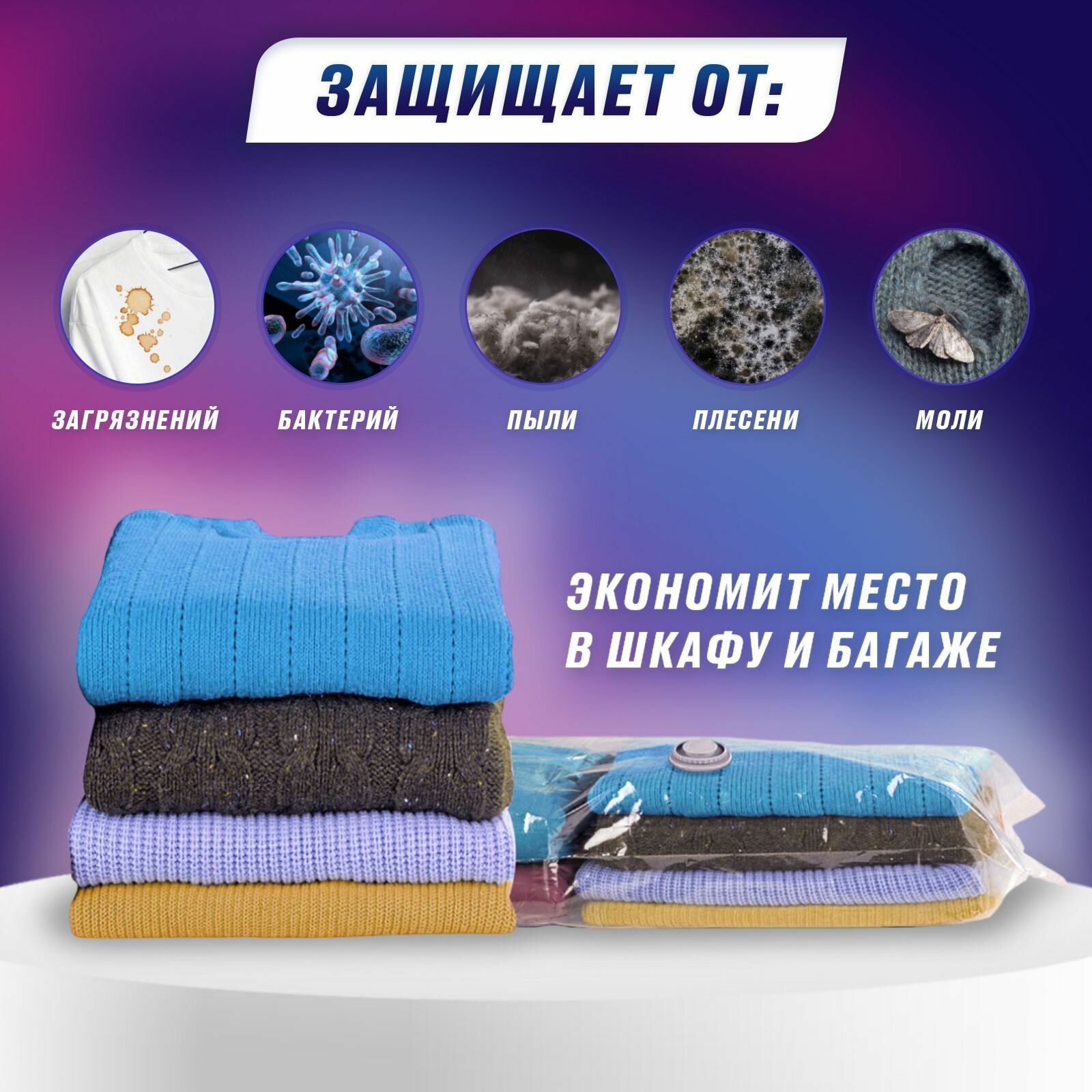 10 цен на Вакуумные пакеты для одежды 5 шт. Набор: 40х60 - 3 шт. 50х70 - 1 шт. 60х80 - 1 шт.