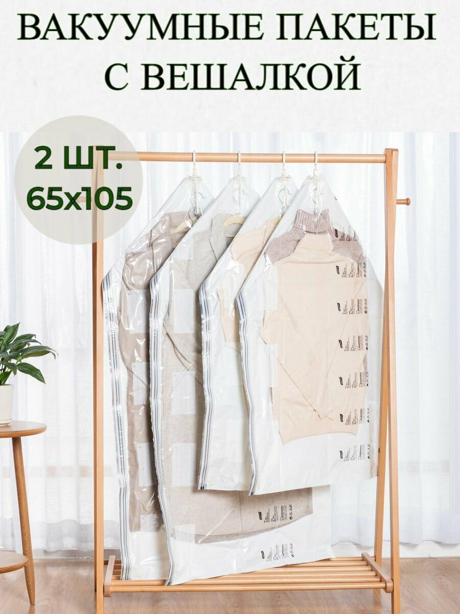 10 цен на Вакуумные пакеты для хранения вещей, сезонной одежды с клапаном, крючком, вешалкой 2 шт. Размер 65х105 см.