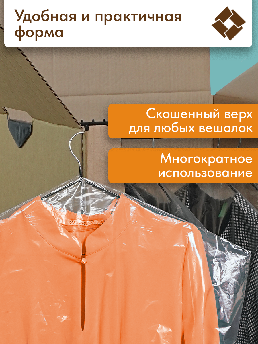 Пакеты полиэтиленовые для одежды, плотность 20 мкм, прозрачные, 150 см, 100 штук 5 400 ₽