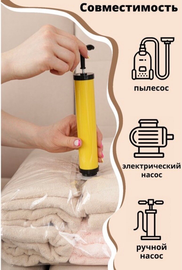 Многоразовые вакуумные пакеты для одежды 80*120 1шт +насос информация: