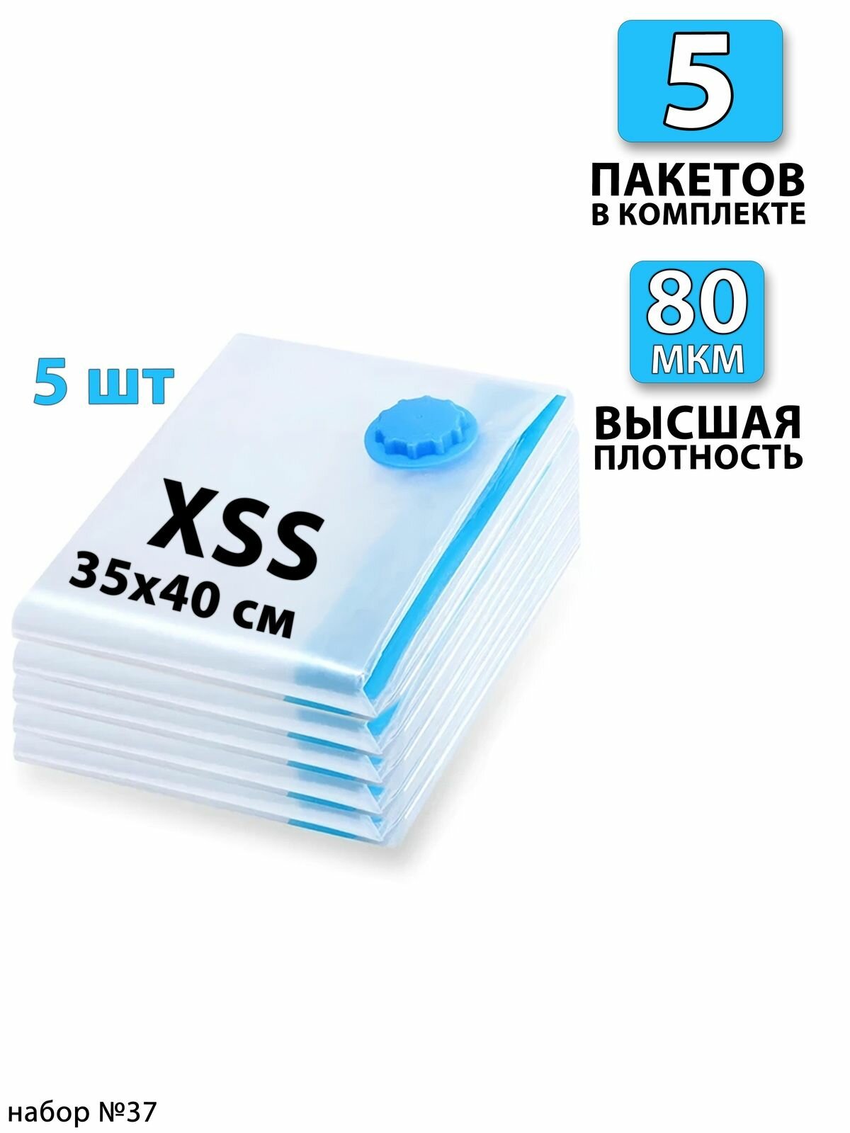 Вакуумные пакеты для одежды 5 шт. Набор: 35х40 - 1шт. 40х50 - 1шт. 50х60 - 1шт. 60x80 - 1шт. 80x100 - 1шт. Для дома с клапаном, для хранения вещей, мешки для игрушек, одеял, с двойным замком 1 375 ₽