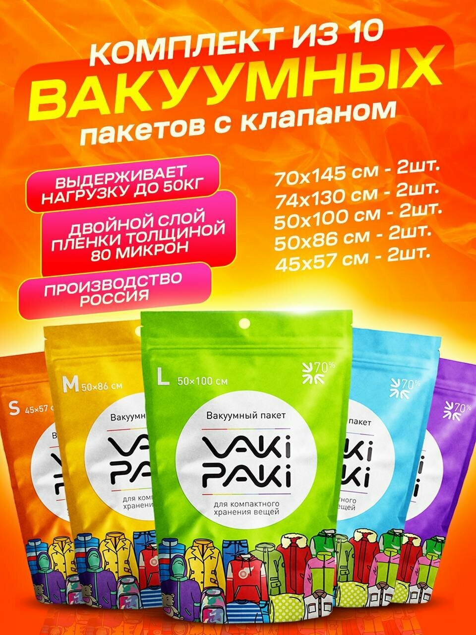 Набор высокопрочных вакуумных пакетов с клапаном для хранения одежды VakiPaki 10 штук информация: