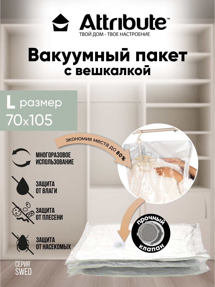 Вакуумный пакет ATTRIBUTE Home, для верхней одежды с клапаном, прозрачный, 70х105 см информация: