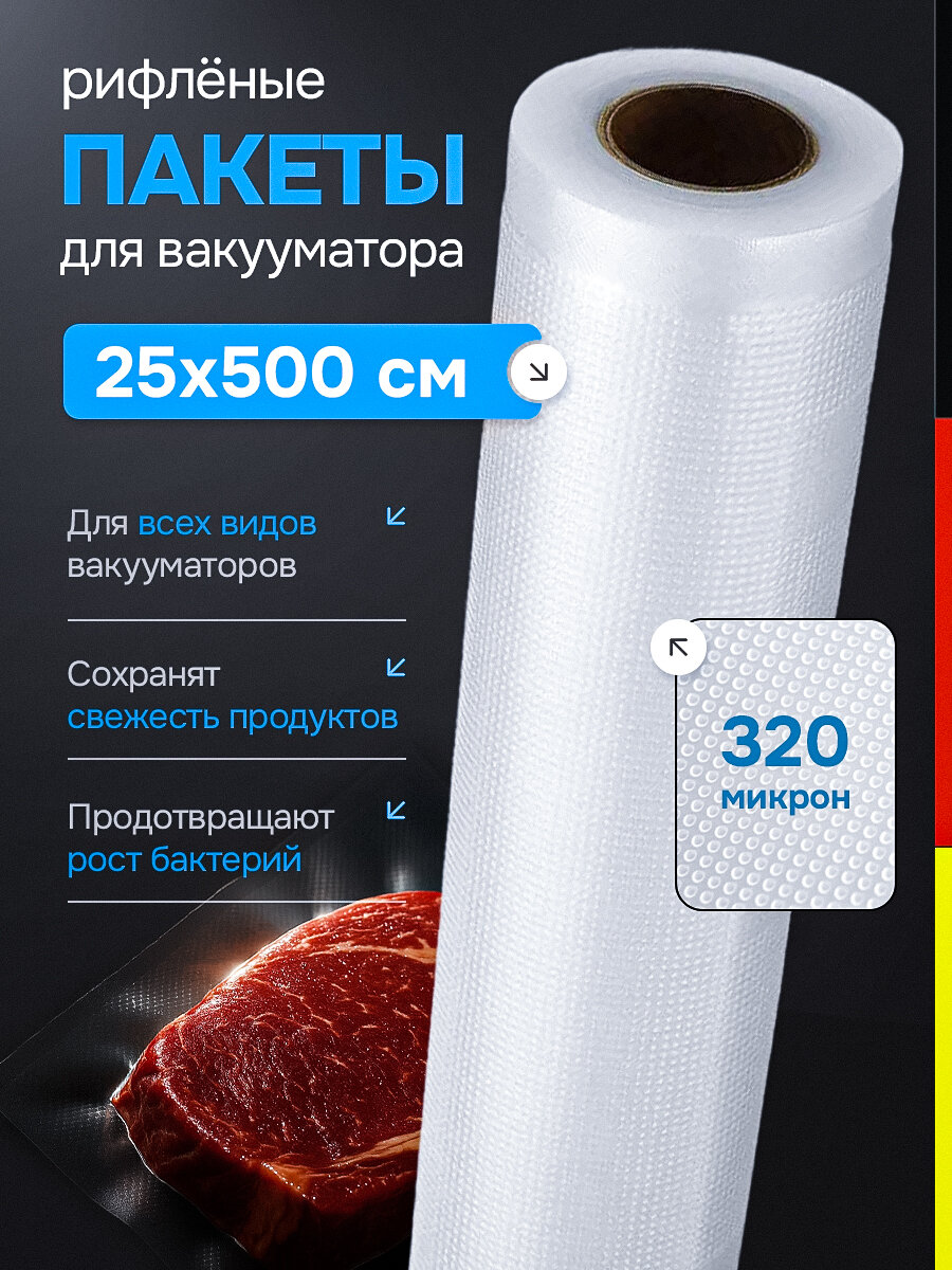 Вакуумные пакеты Rapid Home, рифленые, прозрачные, ширина 25см, длина 500см, 1 рулон информация: