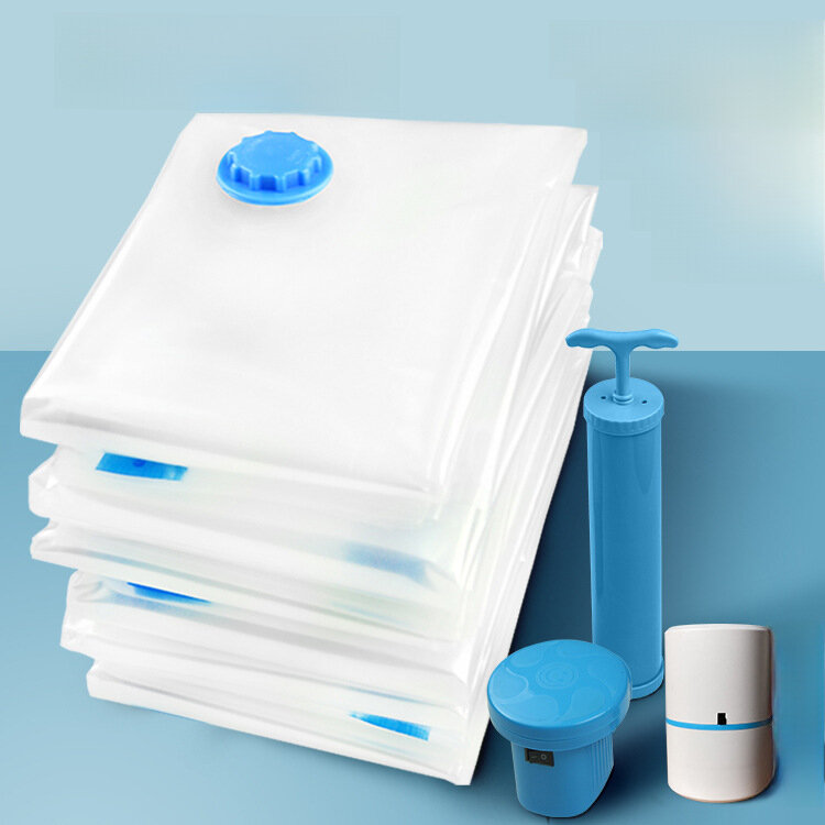 Компрессионный мешок, 70x90 см, для хранения, прозрачный, голубой 519 ₽