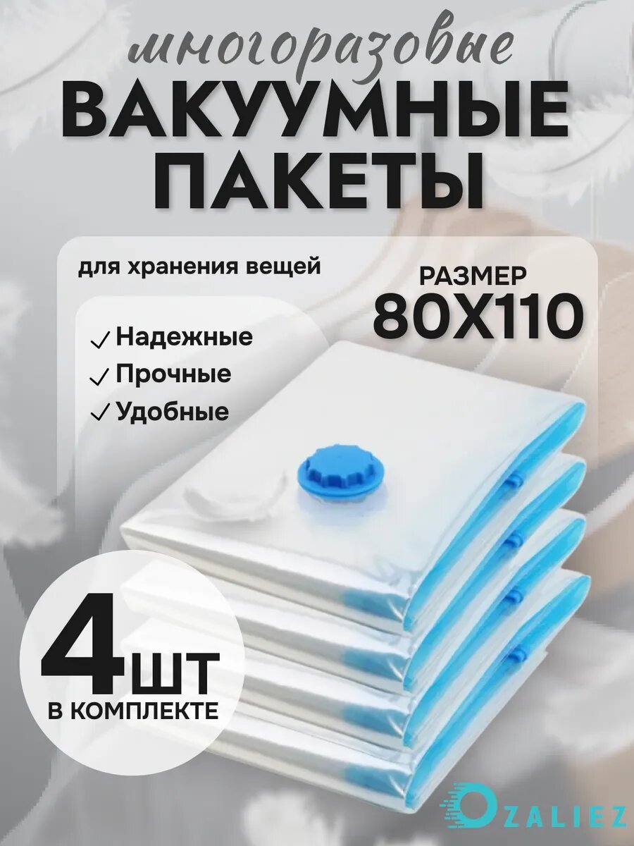 10 цен на Вакуумные пакеты для одежды и вещей 80x110 см 4 штуки
